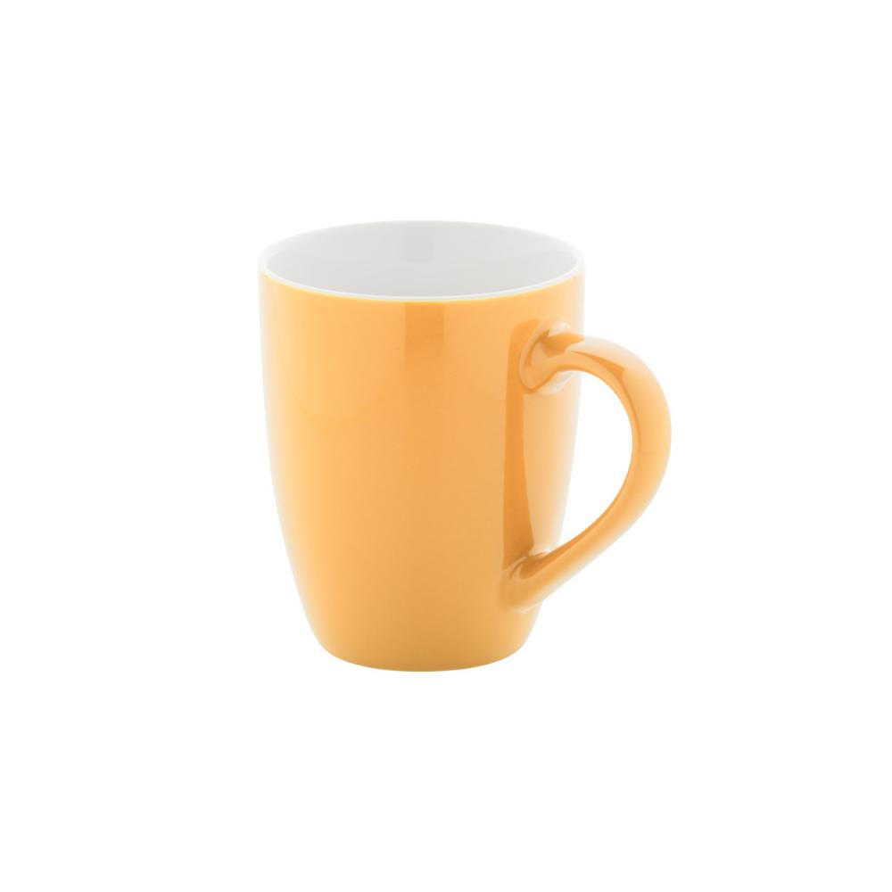 Керамическая кружка высокого качества с цветным наружным покрытием и белым внутренним, объемом 340 мл. В комплекте с коробкой из крафт-бумаги.