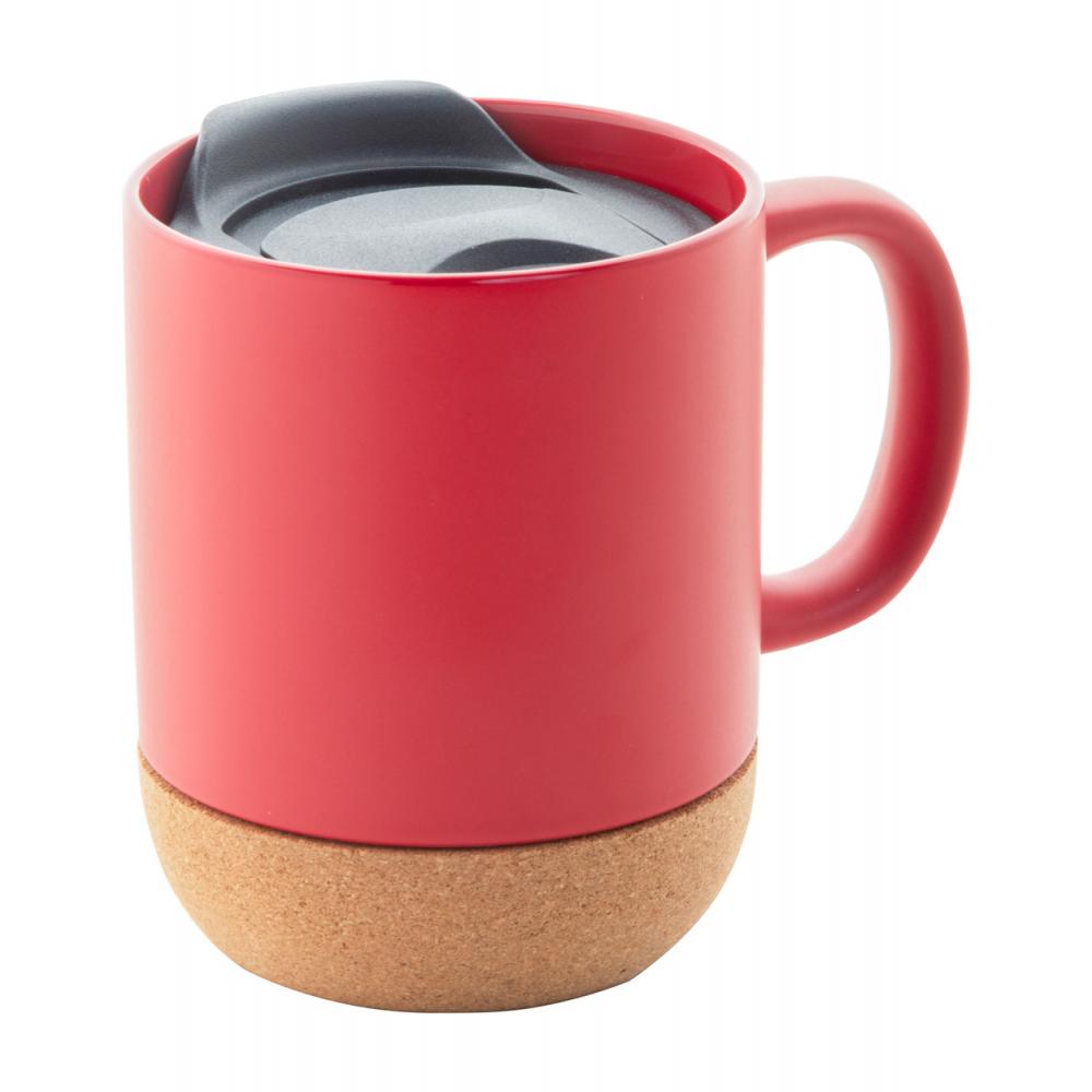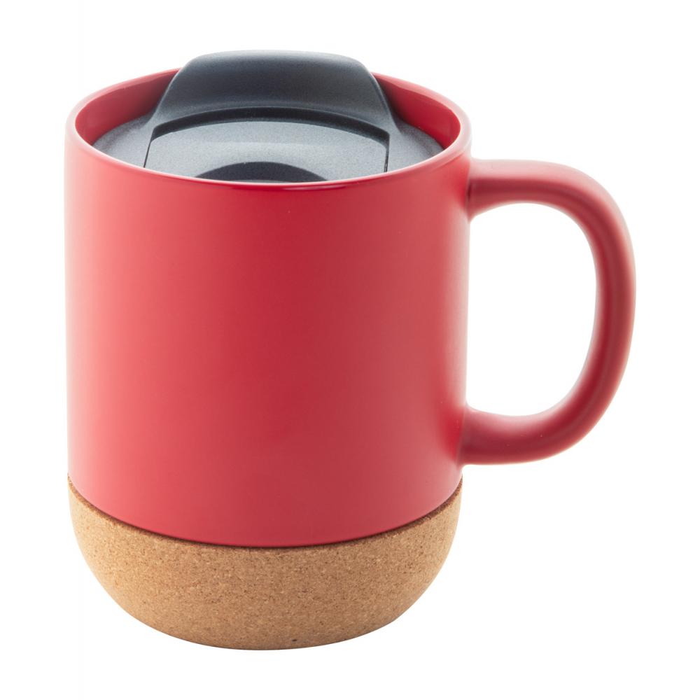 Керамическая кружка высокого качества с натуральным пробковым основанием и пластиковой крышкой для питья из ПП. С матовой внешней и глянцевой внутренней отделкой. Объем 325 мл. В картонной коробке из крафт-бумаги.