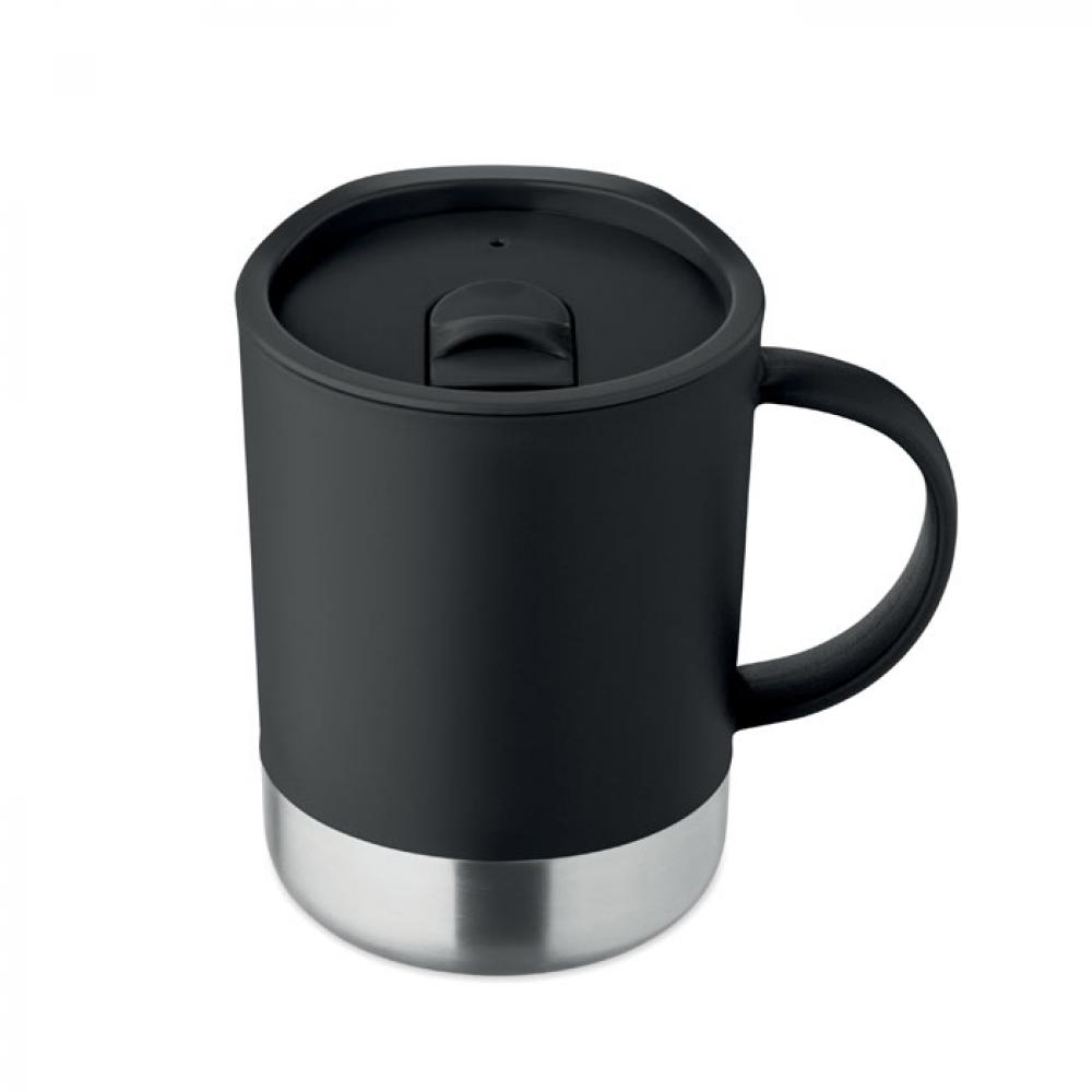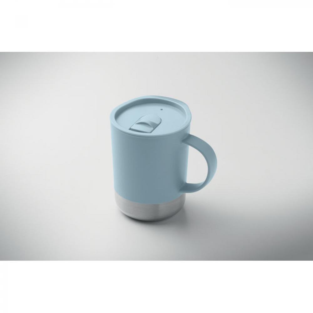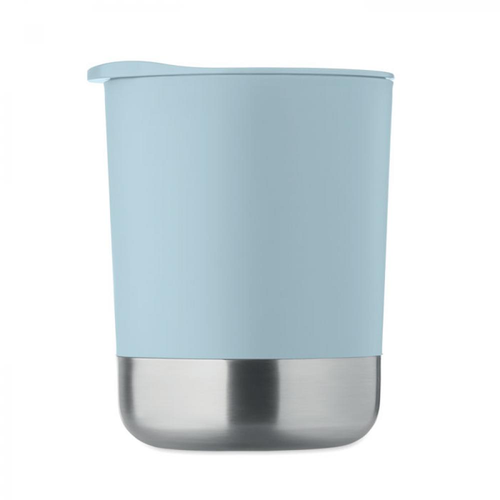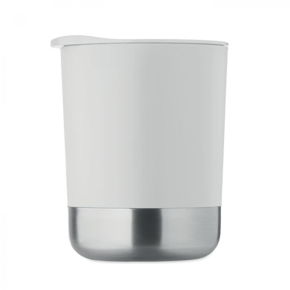 Кружка из полипропилена с основанием из переработанной нержавеющей стали (90% переработанной нержавеющей стали и 10% нержавеющей стали) и полипропиленовой сдвижной крышкой. Объем: 300 мл.