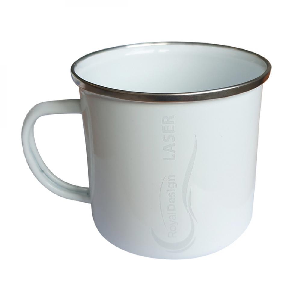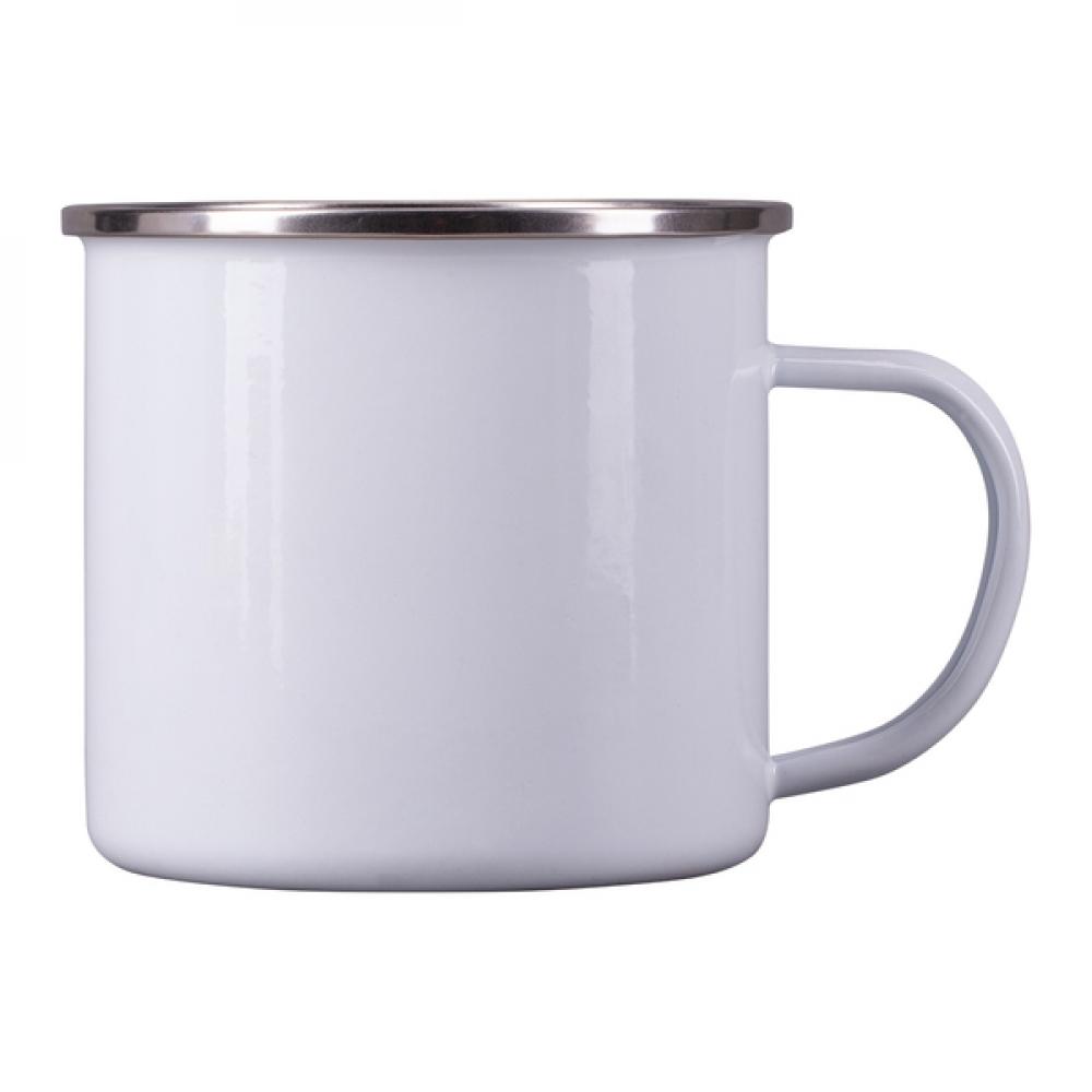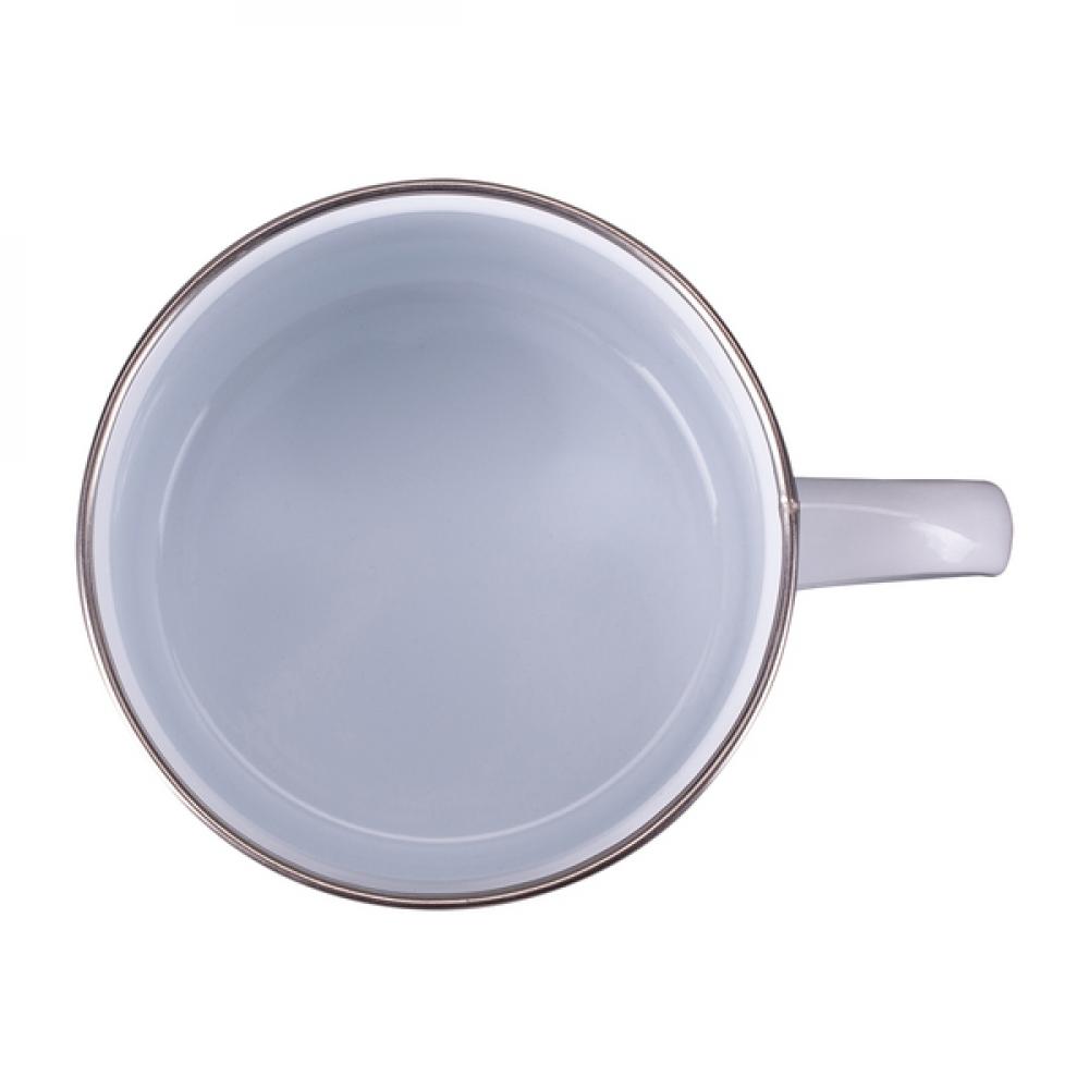 Эмалированная кружка 500 мл с ручкой в винтажном стиле и ободком из нержавеющей стали.