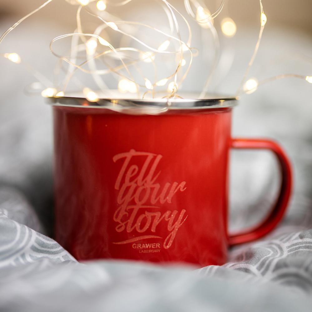 Кружка из углеродистой эмали объемом 500 мл с ручкой в винтажном стиле и ободком из нержавеющей стали.