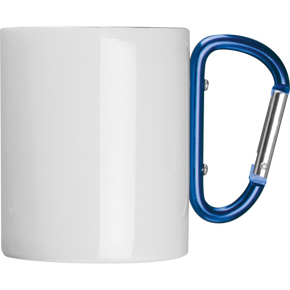 Кружка для питья из нержавеющей стали с цветным алюминиевым карабином и вместимостью 300 мл. Мы напечатаем ваш логотип по всей поверхности кружки с помощью сублимационной печати.