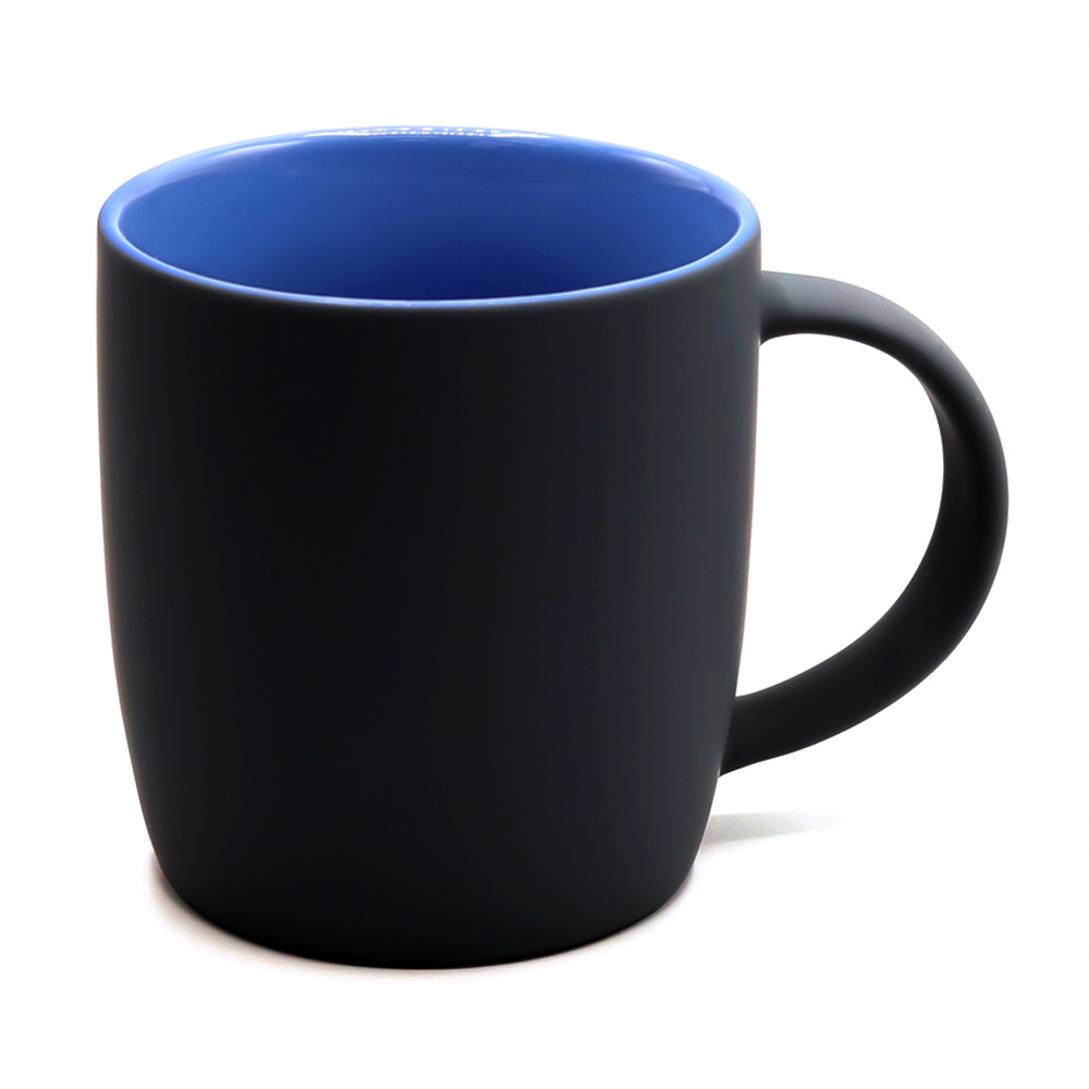 В кружке Spring под покрытием софт-тач слоя нанесен слой глазури такого же цвета, что и внутри; и при гравировке вы получаете яркое цветное изображение.