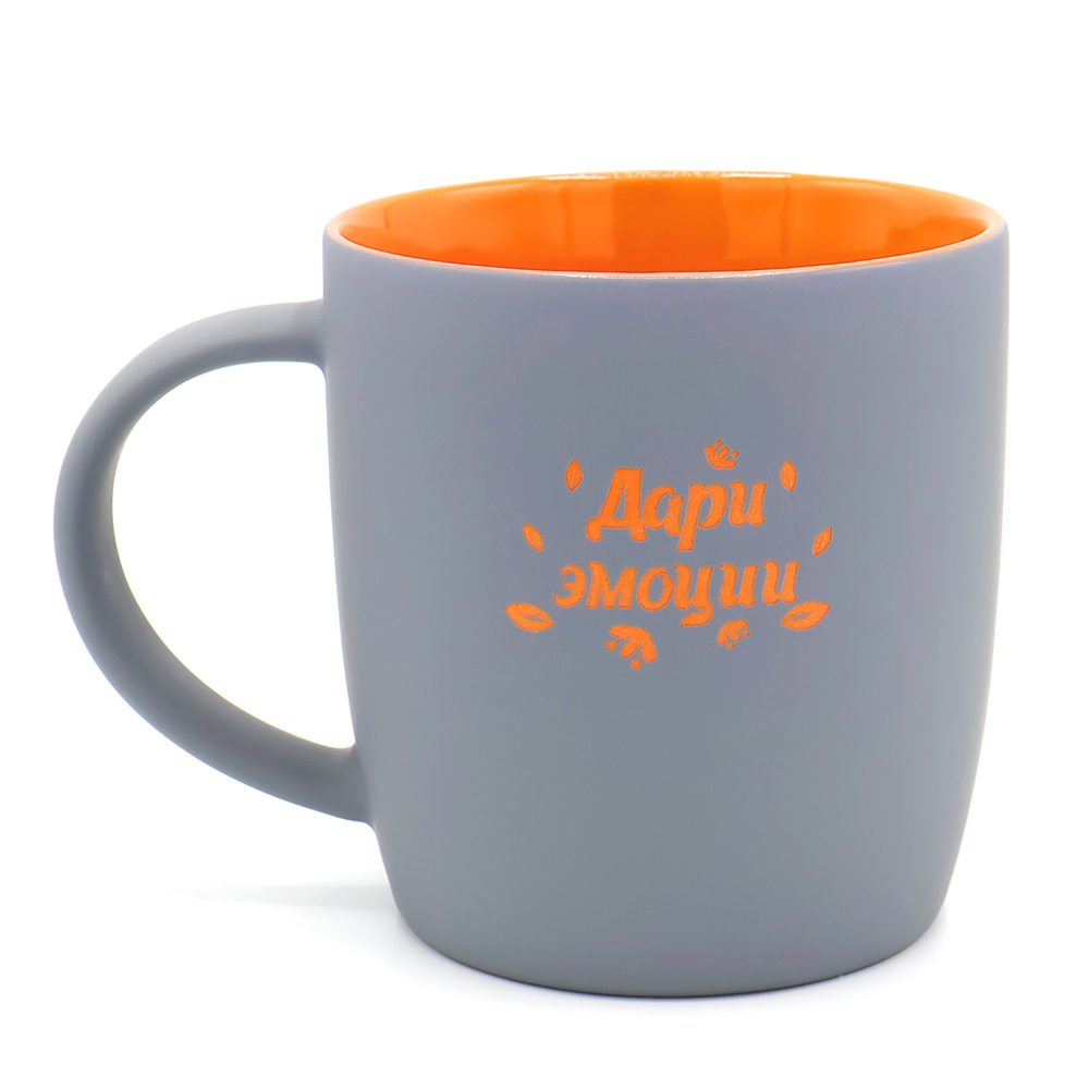 В кружке Spring под покрытием софт-тач слоя нанесен слой глазури такого же цвета, что и внутри; и при гравировке вы получаете яркое цветное изображение.
