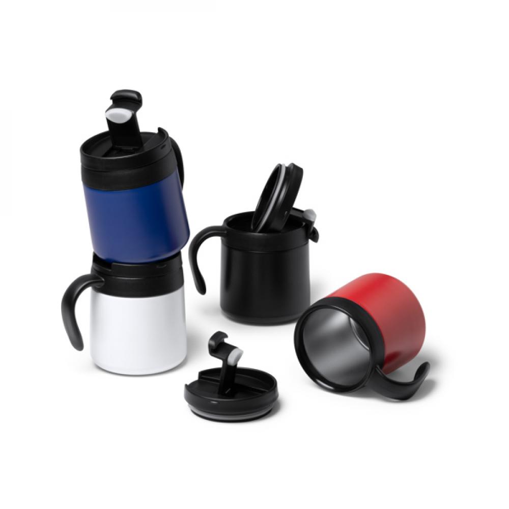 Двухстенная многоразовая кружка из переработанной нержавеющей стали 304 с винтовой крышкой и ручкой. Вместимость 350 мл. Представление в экодизайнерской коробке.