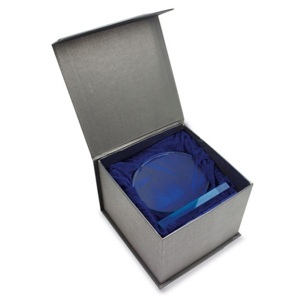 Кристалл с основанием, вырезанный в круглой форме. В комплекте идет роскошная подарочная коробка с атласной подкладкой и магнитной застежкой.