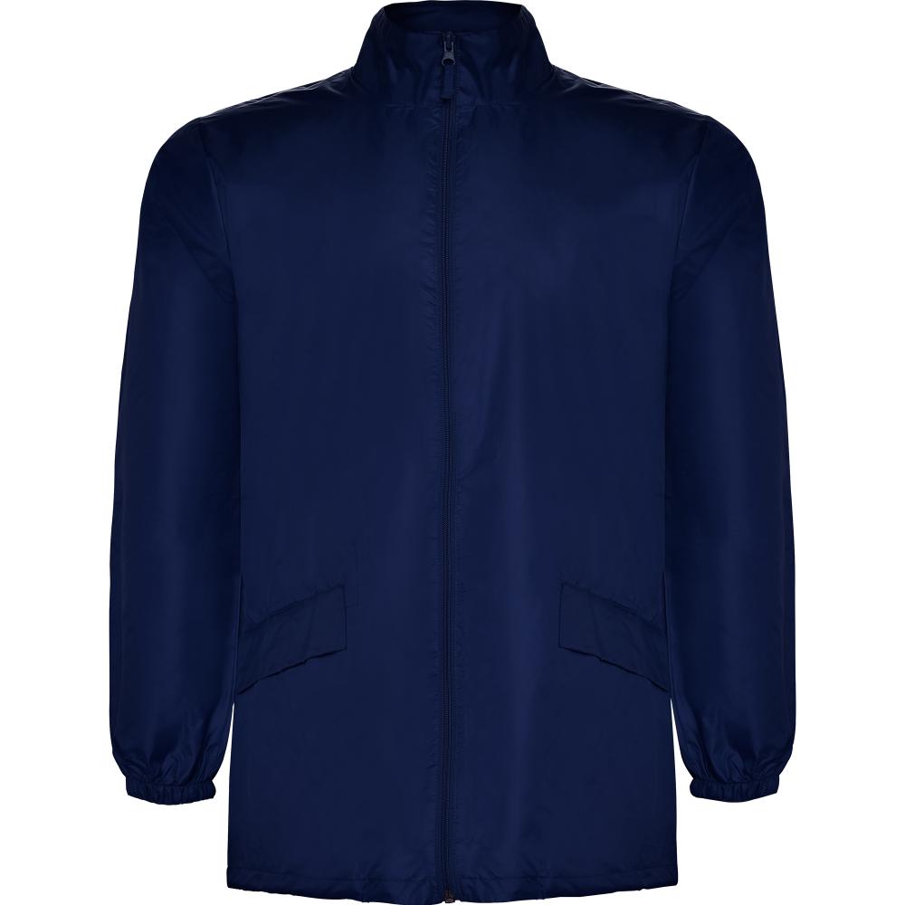Ветровка на молнии с высоким воротником.