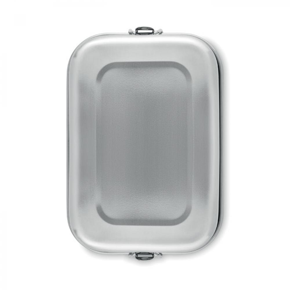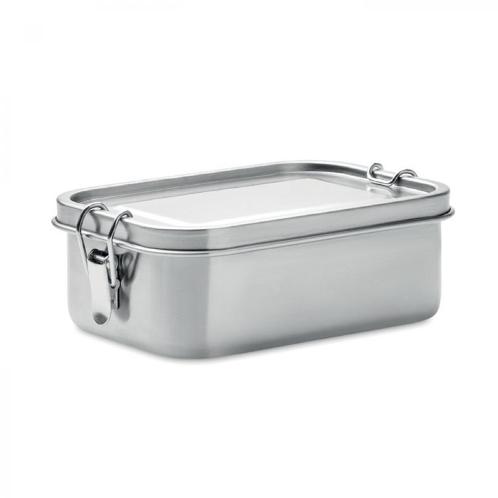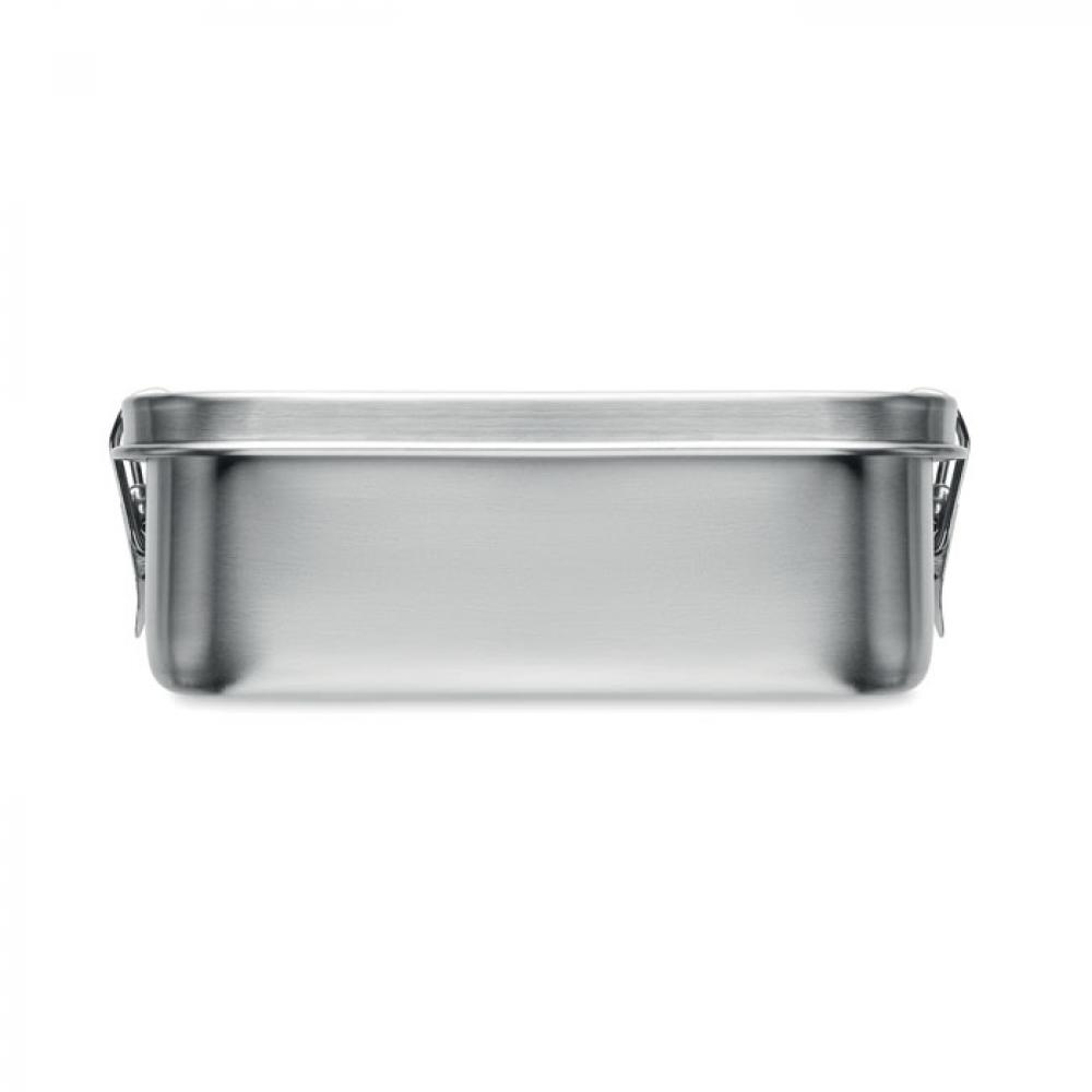 Ланч-бокс из переработанной нержавеющей стали (90% переработанной нержавеющей стали и 10% нержавеющей стали) с надежными боковыми застежками и закругленными углами. Объем: 750 мл.