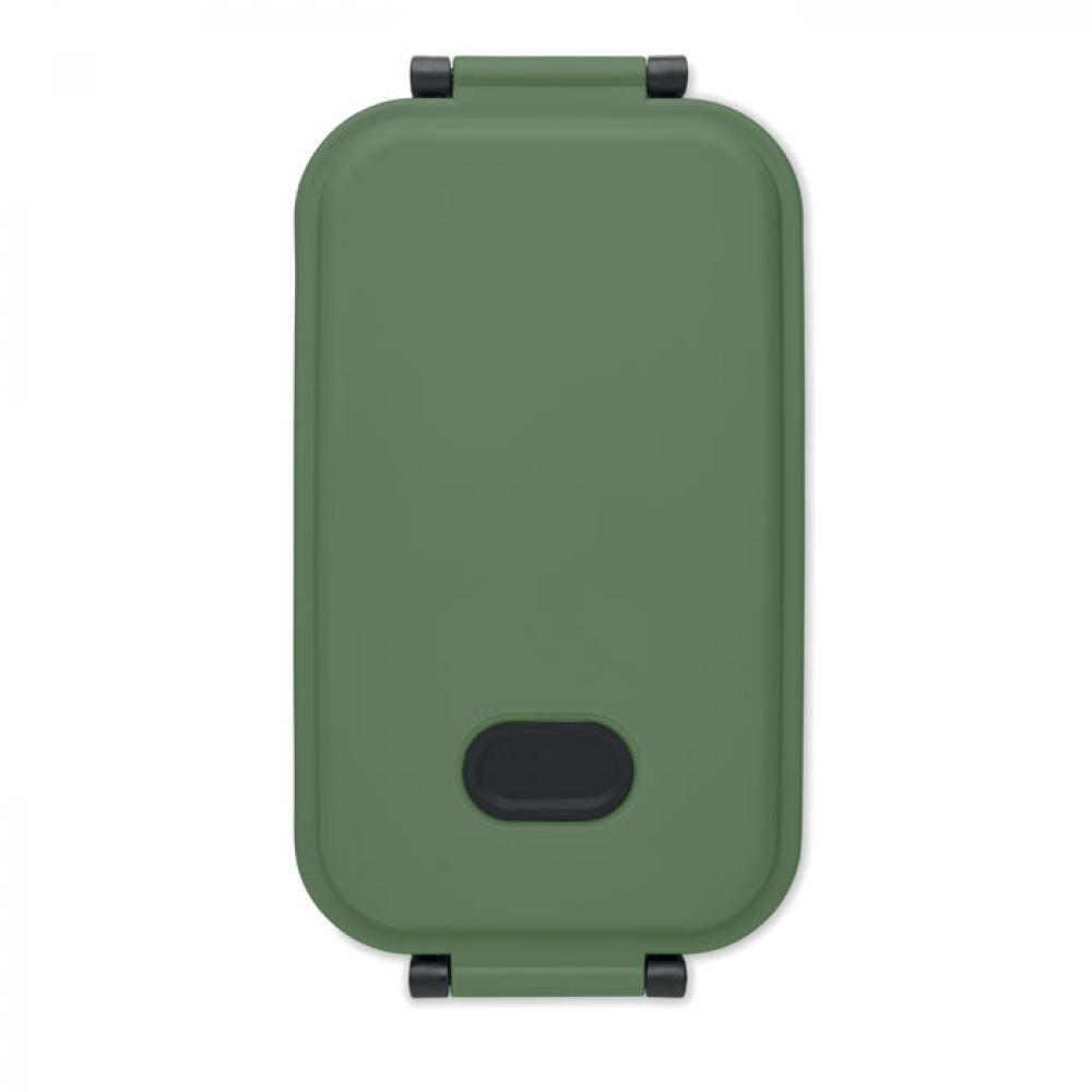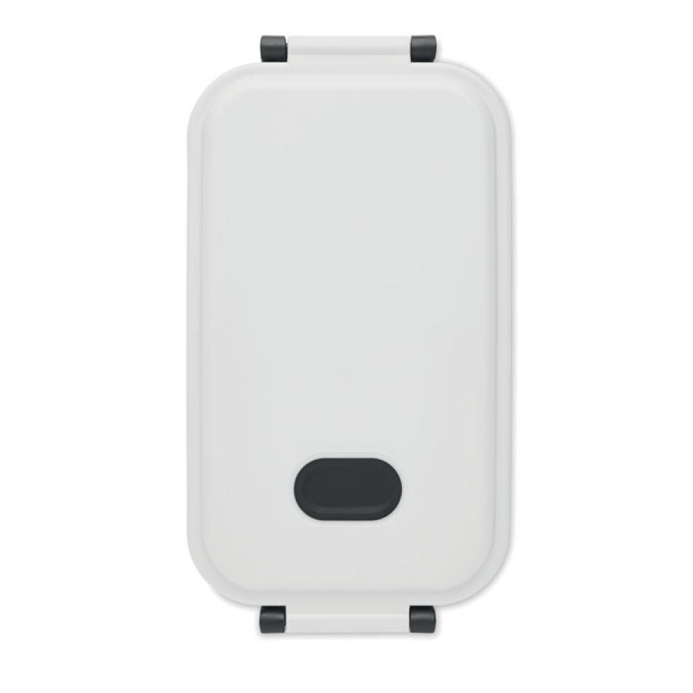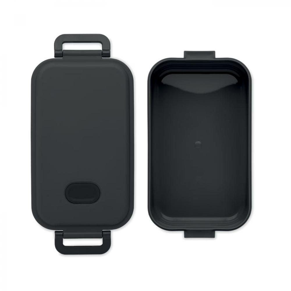 Ланч-бокс из переработанного полипропилена с герметичной крышкой, силиконовым клапаном и двумя боковыми застежками. Вместимость: 800 мл.