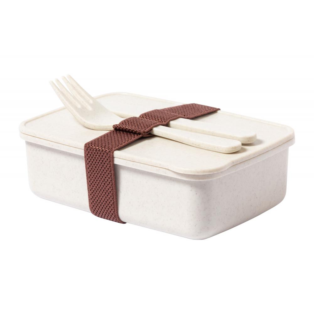 Ланч-бокс из полипропиленового пластика с набором столовых приборов (нож и вилка) и эластичным ремешком. 700 мл.