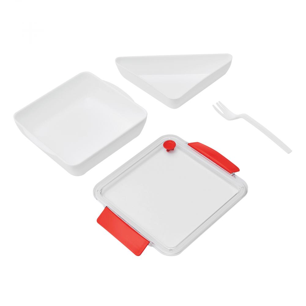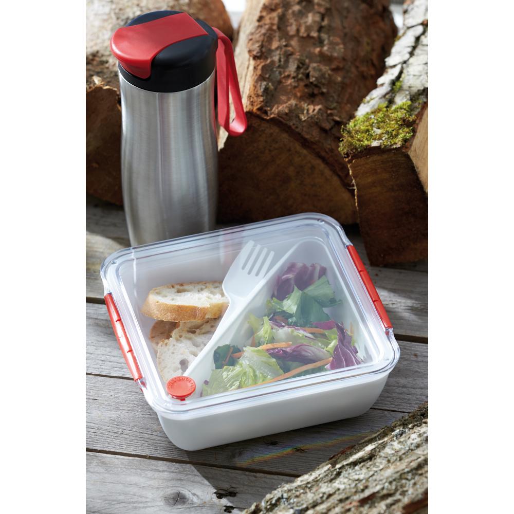 Ланч-бокс DELICIOUS: с отдельным отделением (около 400 мл), вкл. пластиковая вилка, общая вместимость ок. 1.000 мл, вкл. воздухозаборник в крышке, подходит для посудомоечных машин и микроволновых печей