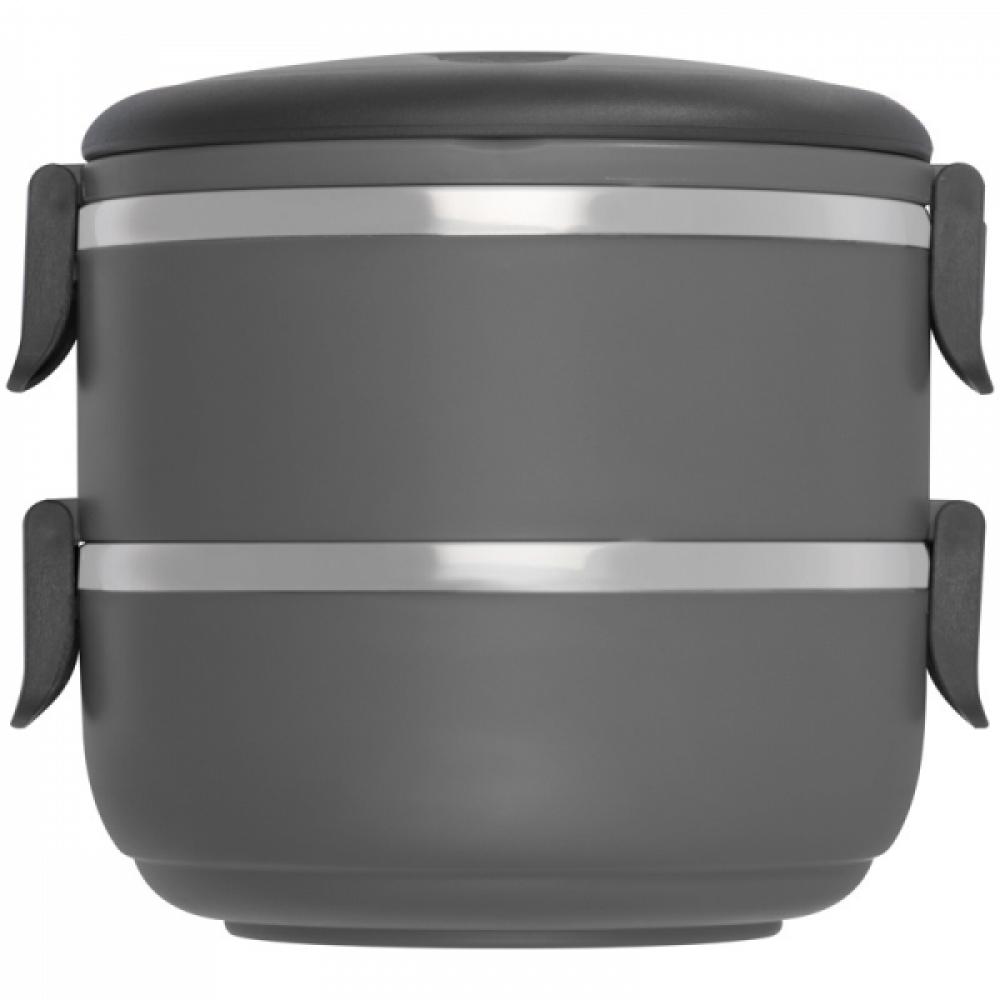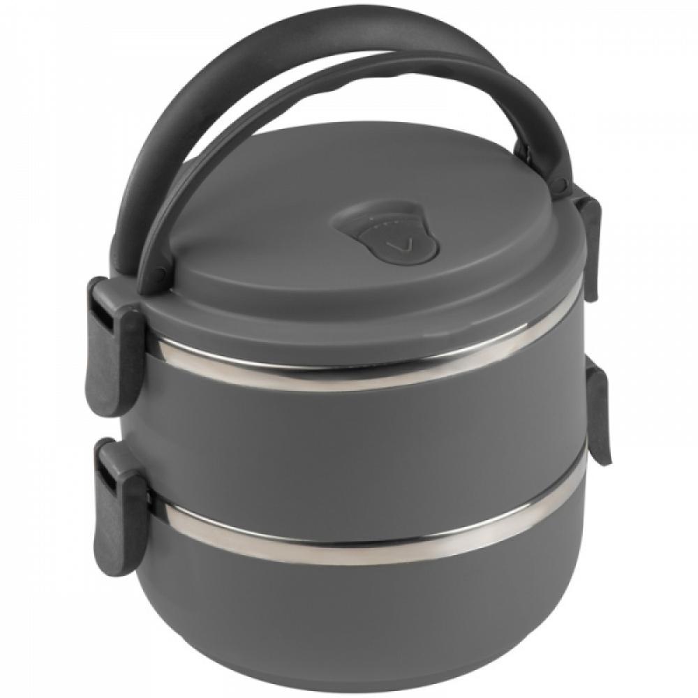 Практичная коробка для завтрака - внутри из нержавеющей стали. Имеет два отделения и ручку для переноски. Логотип можно нанести прямо на изделии.