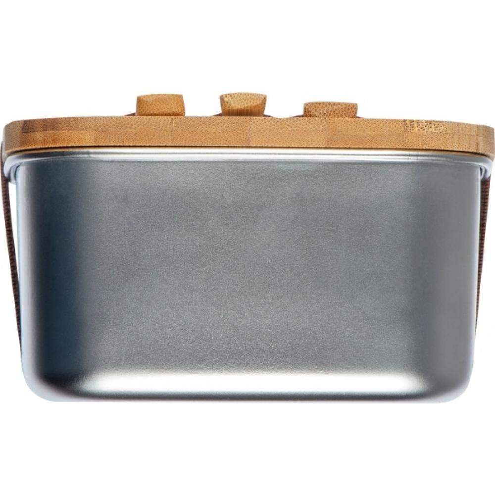 Бокс для завтрака из нержавеющей стали с бамбуковой крышкой, бамбуковыми столовыми приборами и силиконовым ремешком.
