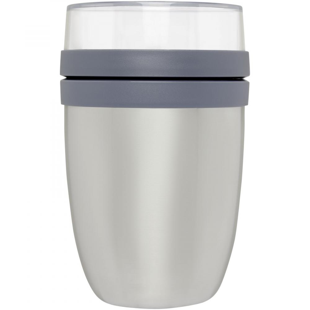 Изолированный ланч-бокс с двумя разными отделениями для разделения различных ингредиентов. Оба контейнера имеют отдельные крышки, чтобы ингредиенты не смешивались. Сохраняет еду теплой в течение 10 часов или холодной в течение 16 часов. Чтобы еда оставалась горячей или холодной как можно дольше, рекомендуется ополоснуть ланч-бокс горячей или ледяной водой перед заполнением. Объем верхнего прозрачного контейнера составляет 200 мл, что позволяет вместить около 75 граммов твердой пищи. Объем нижнего контейнера составляет 500 мл. Изготовлен из прочного материала, внешняя часть ланч-бокса остается прохладной и сухой. Рекомендуется мыть вручную. Пластиковые части крышки можно мыть в посудомоечной машине. Герметичный. Не содержит BPA. Гарантия Mepal на 2 года.