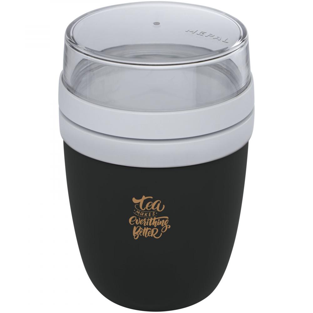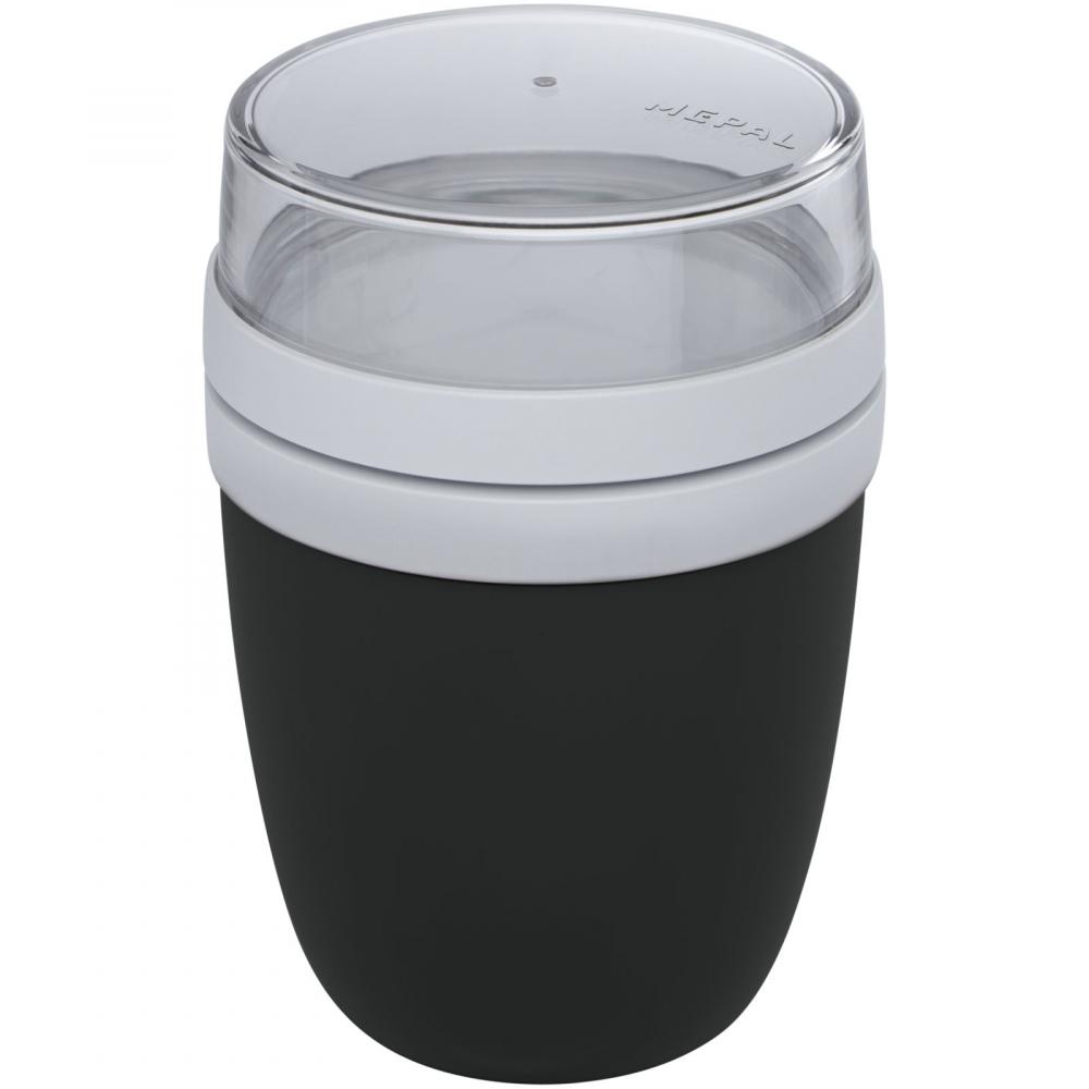 Ланч-бокс с двумя отдельными отделениями для раздельного хранения различных ингредиентов. Оба контейнера имеют отдельные крышки, что позволяет им оставаться чистыми. Объем верхнего прозрачного контейнера составляет 200 мл, что позволяет вместить около 75 граммов твердой пищи. Объем нижнего контейнера составляет 500 мл. Изготовлен из прочного материала, подходит для использования в морозильной камере, микроволновой печи (без крышки) и посудомоечной машине. Верхний прозрачный контейнер нельзя использовать в микроволновой печи. Герметичный. Не содержит BPA. Гарантия Mepal 2 года.