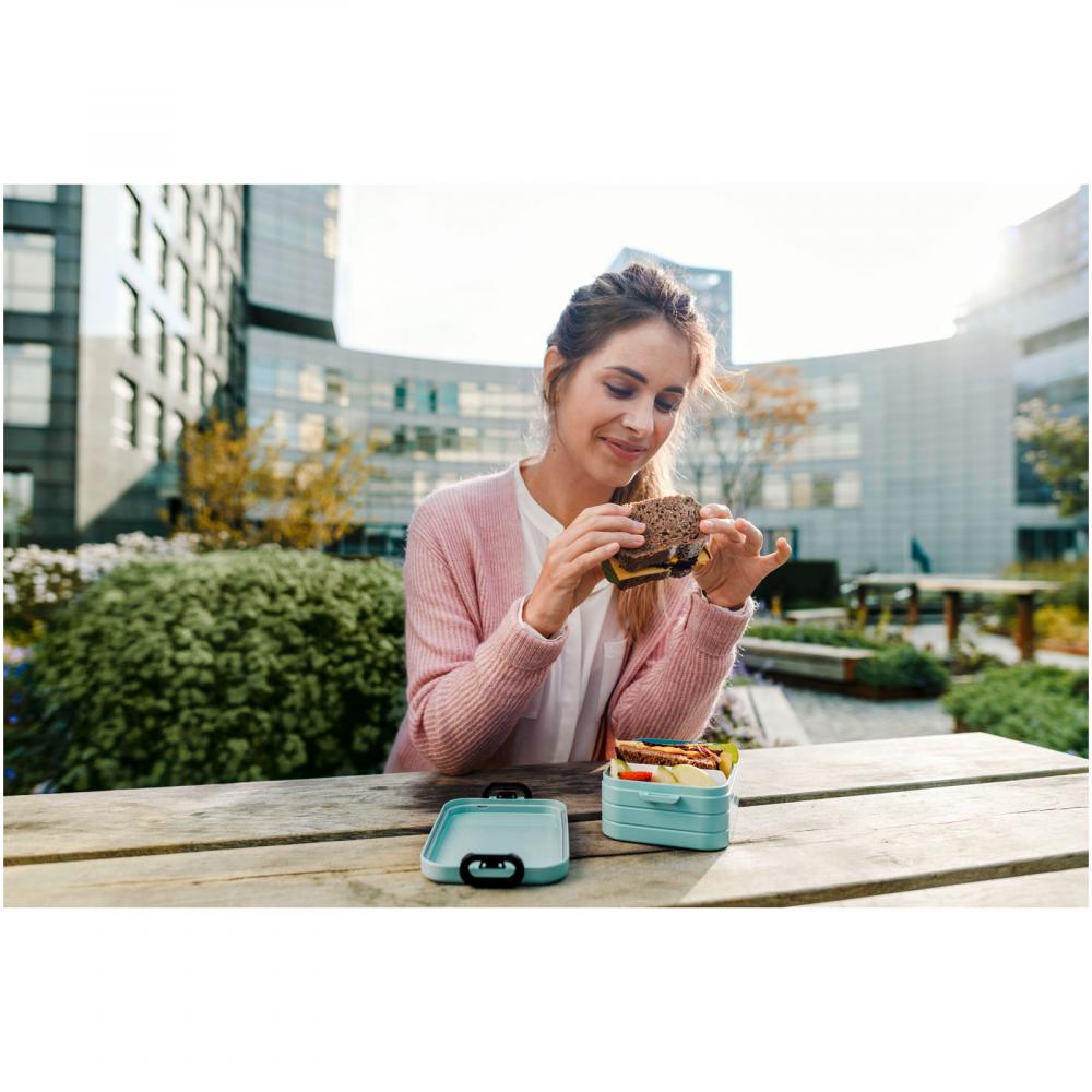 Ланч-бокс с плотно закрывающимся кольцом для сохранения свежести и вкуса содержимого. Вмещает 4 бутерброда. В комплекте разделитель. Объем 900 мл. Можно мыть в посудомоечной машине. Не содержит BPA. Гарантия Mepal на 2 года.