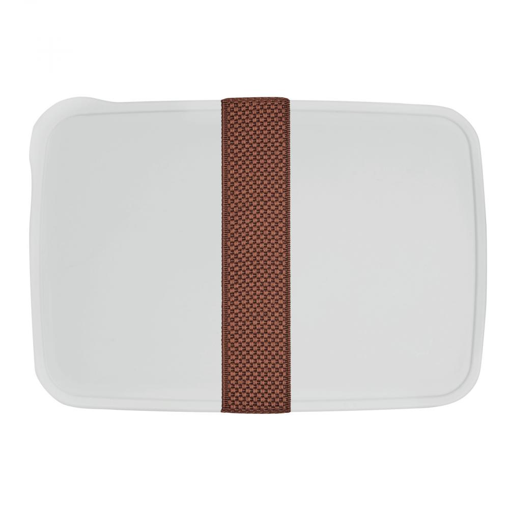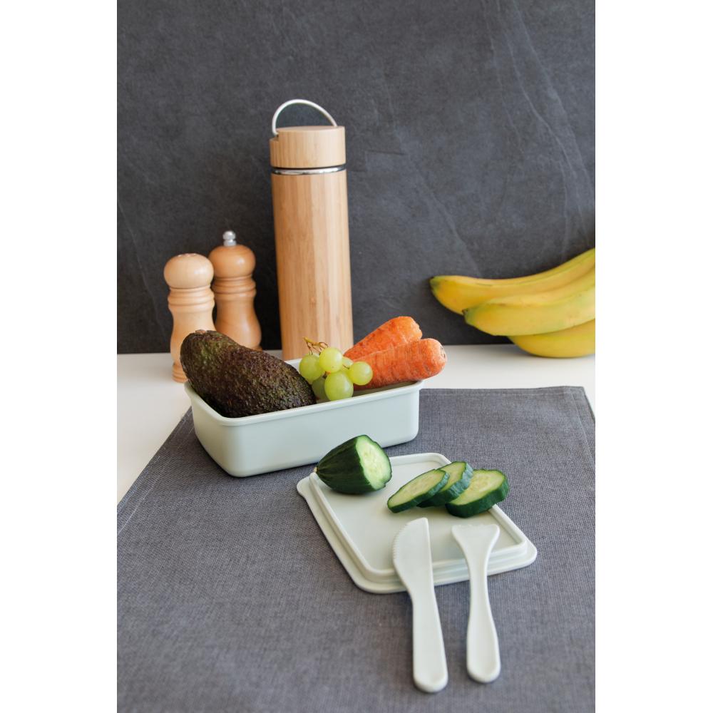 Ланч-бокс LUNCH TIME: коробка с силиконовой крышкой, резинкой для плотного прилегания крышки, которая предназначена для удержания ножа и вилки, вместимостью около 700 мл, аксессуары (и + столовые приборы) поставляются внутри коробки.