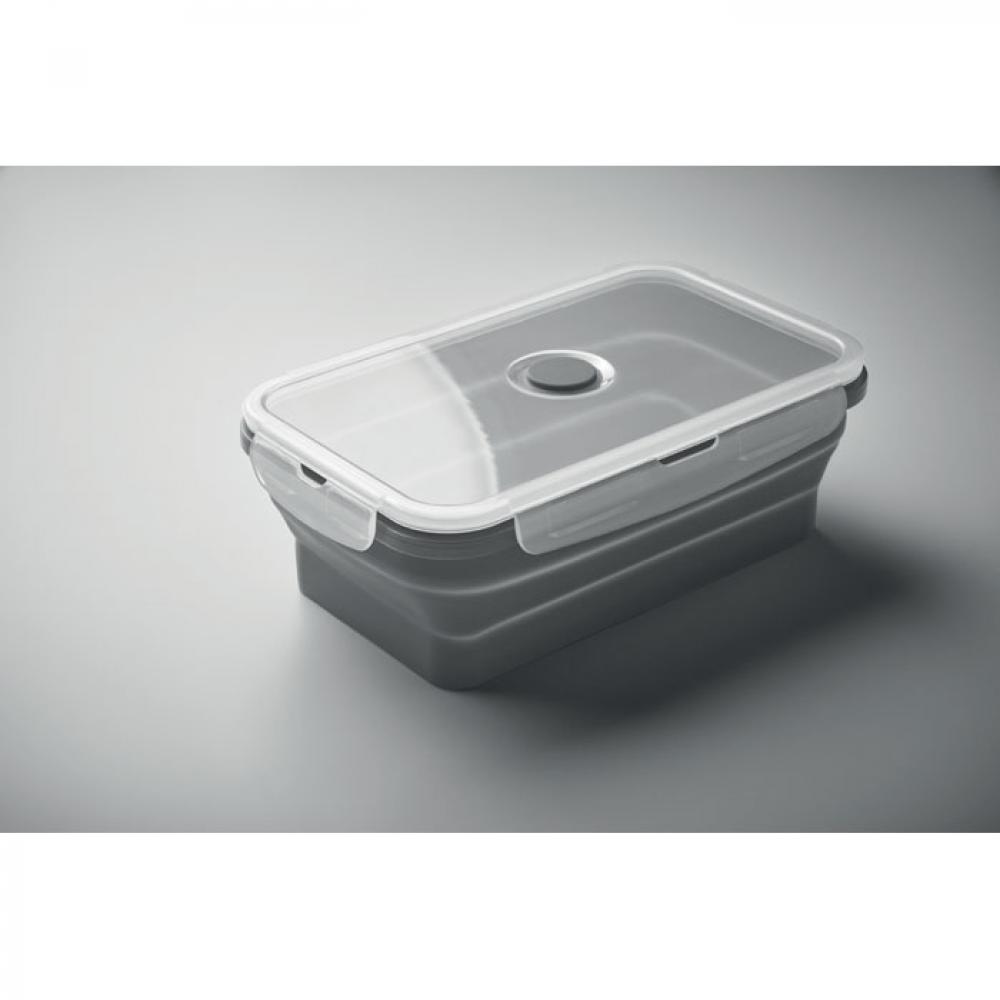 Складной силиконовый ланч-бокс с крышкой из полипропилена с силиконовым клапаном. Объем: 1200 мл.
