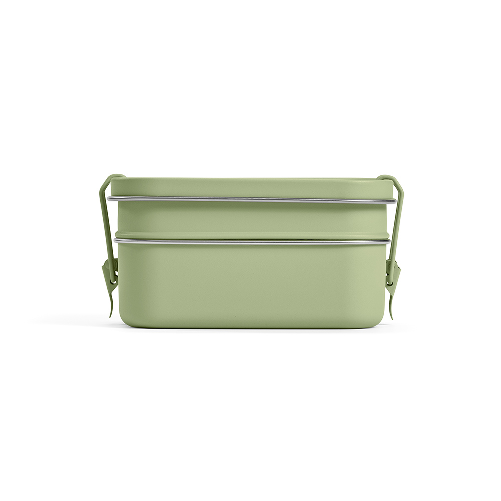 Этот ланч-бокс объемом 1240 мл (чистый объем 1050 мл) — настоящий многофункциональный помощник. Закрепленный боковыми застежками, он удобен для переноски обеда на работу или вашего последнего кулинарного творения на пикник. Две отделения позволяют разнообразить содержимое: суши с одной стороны, салат с другой.