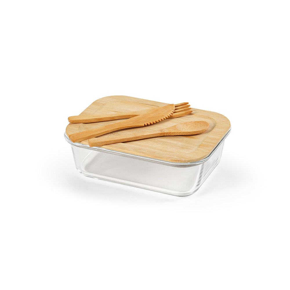 Этот ланч-бокс объемом 520 мл (480 мл чистого объема) представляет собой устойчивый стиль, где соединяются боросиликатное стекло и бамбук. Резинка удерживает столовые приборы и надежно фиксирует крышку. Это ваш зеленый гурманский спутник, от салатов до пасты, делая каждый прием пищи экологично приятным.