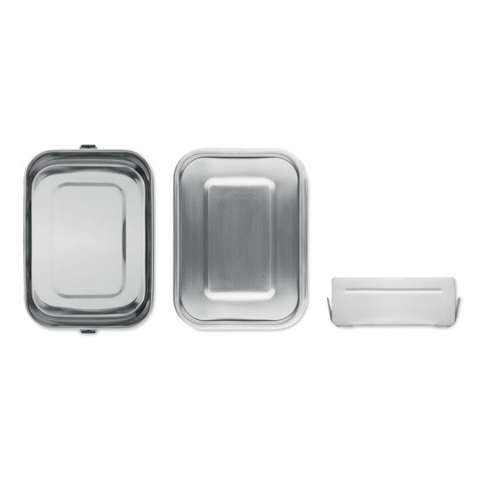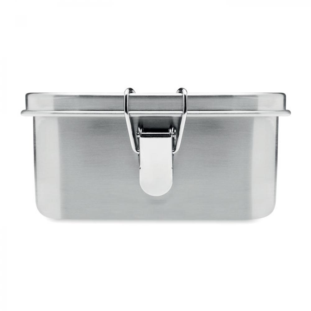 Ланч-бокс из нержавеющей стали с прочными и надежными боковыми застежками. Включает внутренний разделитель. Вместимость: 1200 мл.