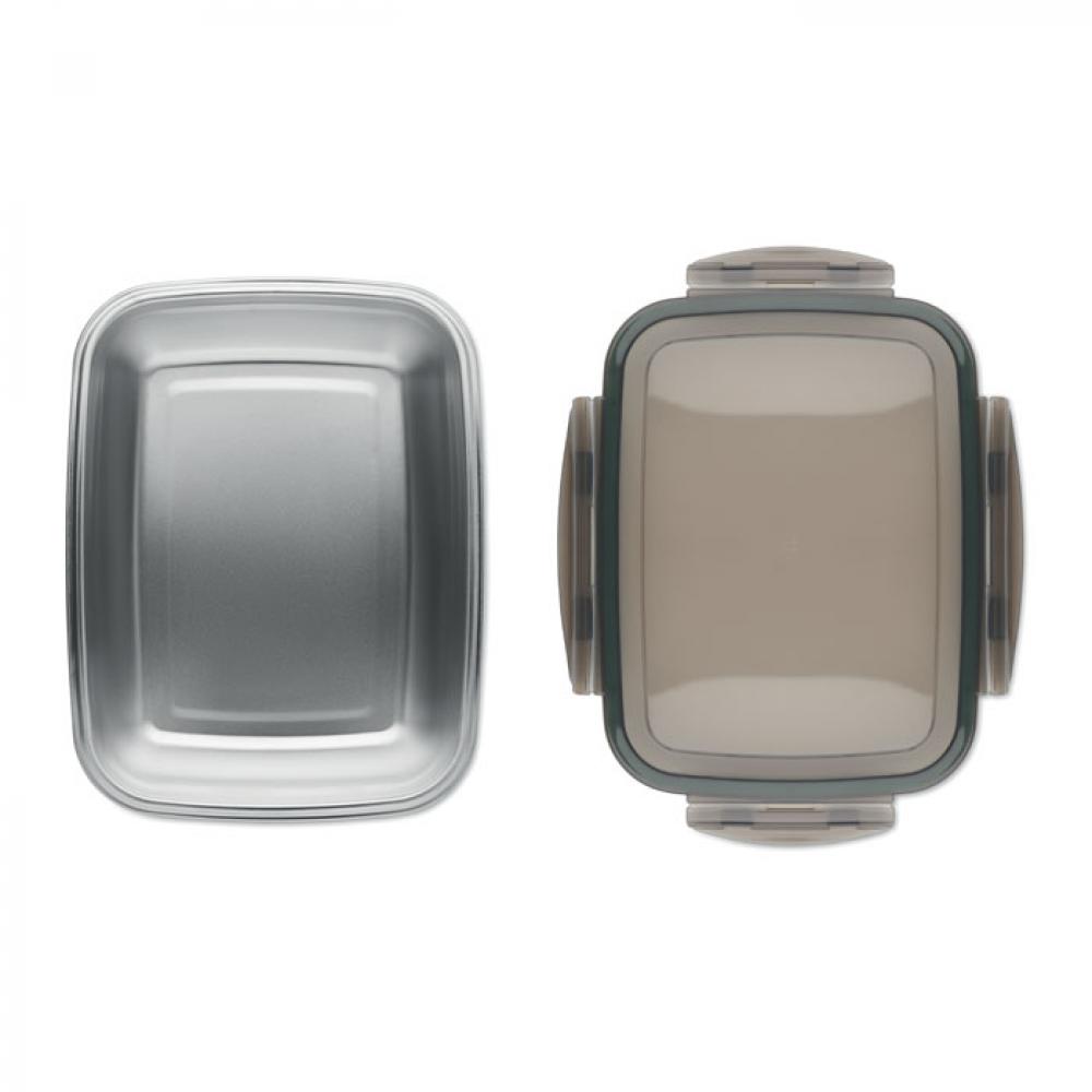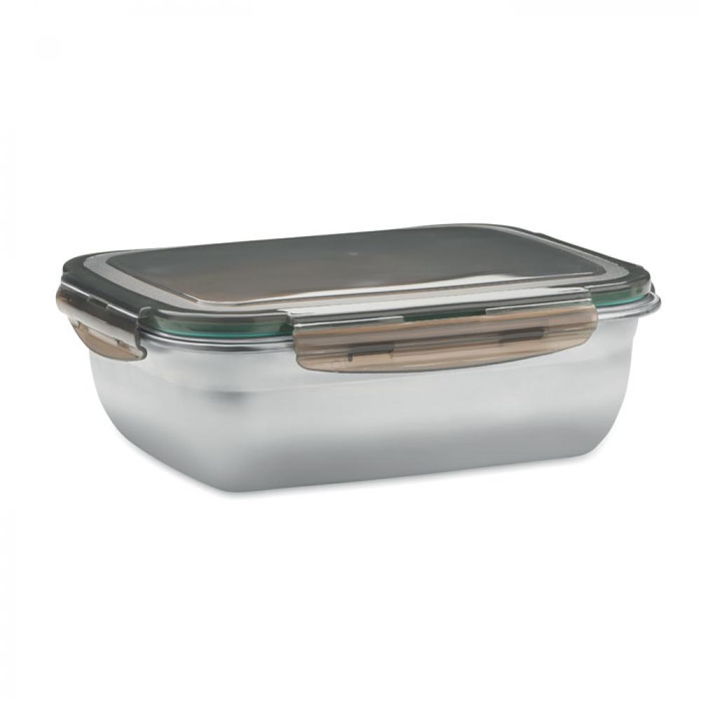 Ланчбокс из переработанной нержавеющей стали с крышкой из переработанного полипропилена и 4-сторонней застежкой. Включая разделитель. Вместимость: 1500 мл.