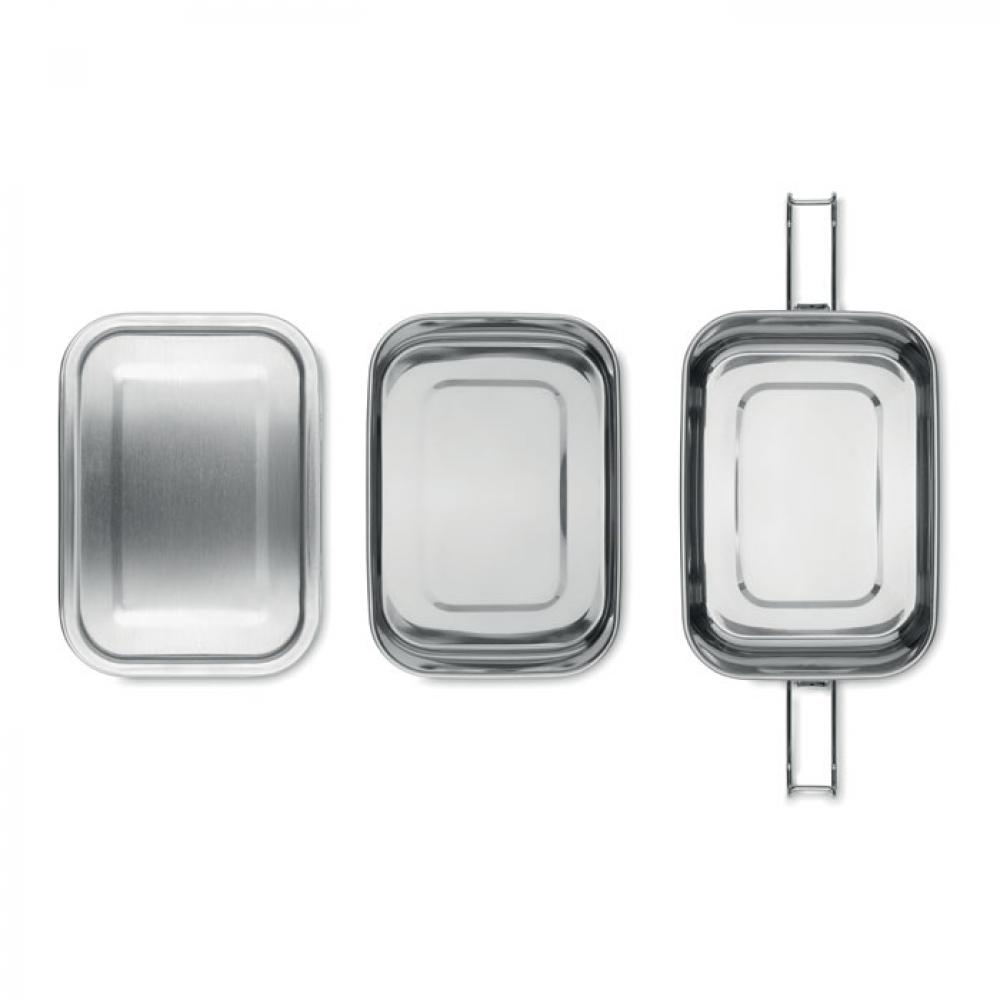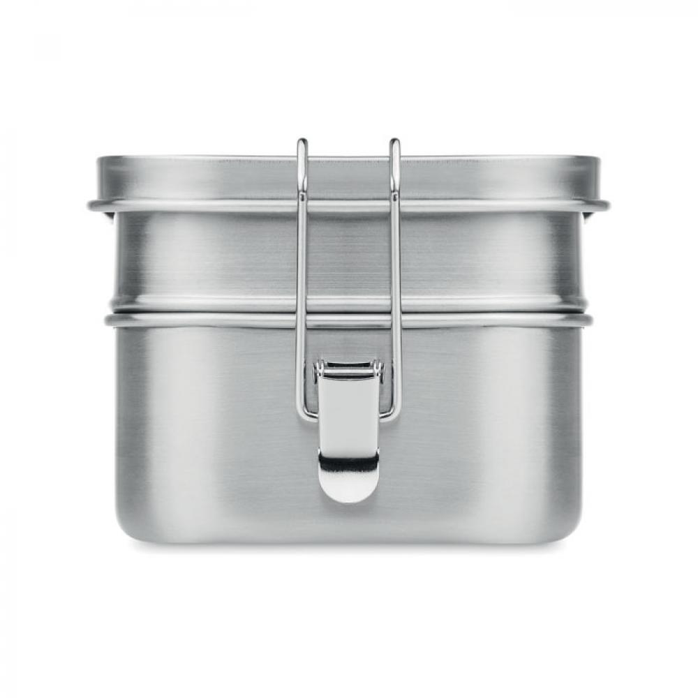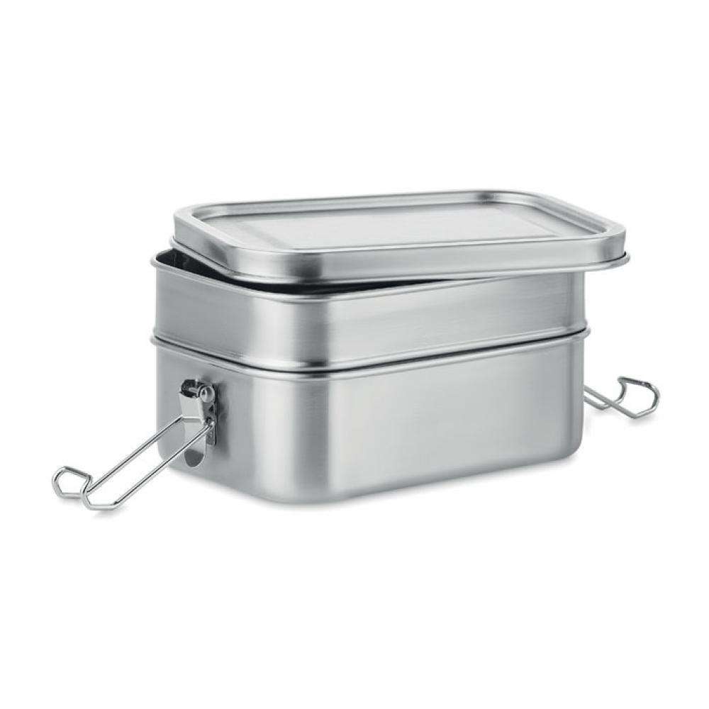 Ланчбокс из нержавеющей стали с 2 отделениями. Крышка плотно застегивается боковыми зажимами. Емкость 1200 мл.