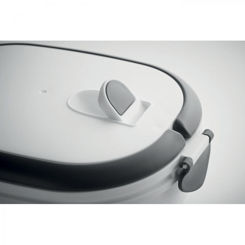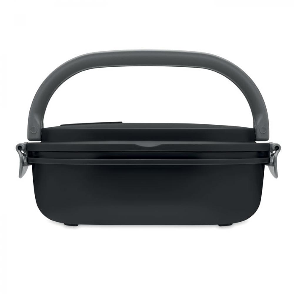 Ланч бокс с герметичной крышкой из полипропилена снаружи и внутри. Можно использовать в микроволновой печи и мыть в посудомоечной машине. Емкость 750 мл.