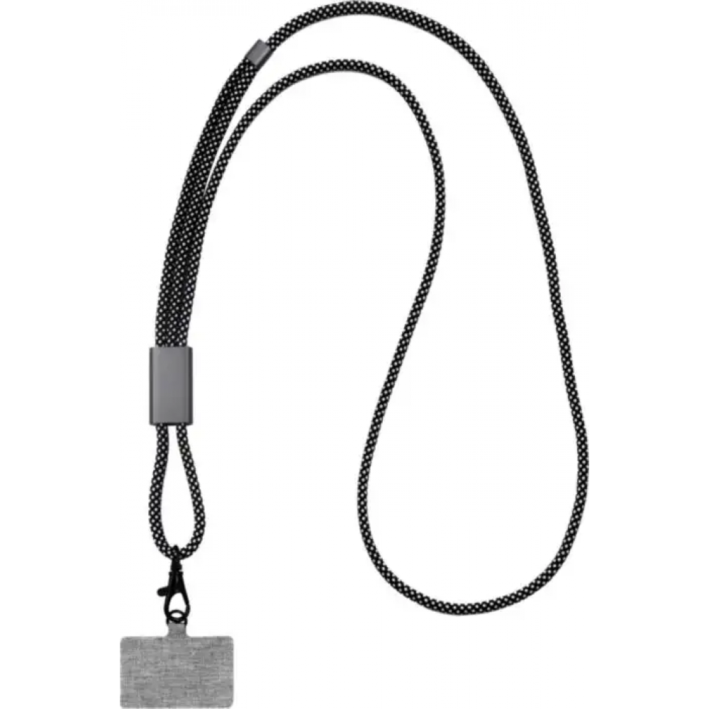 Ланьярд Lany Eco - идеальный корпоративный подарок для любого владельца телефона! Изготовленный из переработанных ПЭТ-бутылок, с тонким и прочным металлическим дизайном. Этот регулируемый, удобный для зарядки ремешок-адаптер совместим с большинством чехлов для телефонов, что делает его незаменимым гаджетом для использования в дороге.