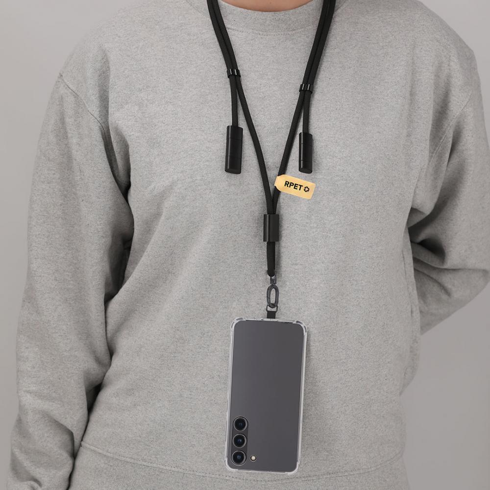 Инновационный шнурок с функцией поддержки и зарядки, изготовленный из комбинации RPET полиэстера и переработанного алюминия. Разработан для легкой установки между чехлом и смартфоном благодаря своему транспортному аксессуару. Включает соответствующий ремешок, вращающийся черный металлический карабин, и аксессуар для безопасности шеи. Предлагает функциональность зарядки и передачи данных, с USB и Type C входом, а также выходами Micro USB, Lightning и Type C. Отображает эмблему RPET на крафт-ярлыке, подчеркивающую свою устойчивую позицию. Материал RPET изготовлен из переработанного пластика, способствуя повторному использованию пластиковых отходов и помогая сохранить планету. Переработанный алюминий - материал с почти бесконечными возможностями переработки, не теряющий своих первоначальных свойств и потребляющий меньше энергии в этом процессе. Сертификат GRS (Глобальный стандарт переработки), который гарантирует переработанное происхождение материала, используемого для производства продукта.
