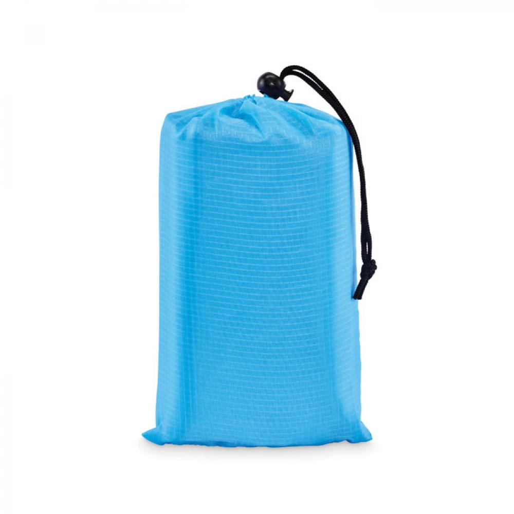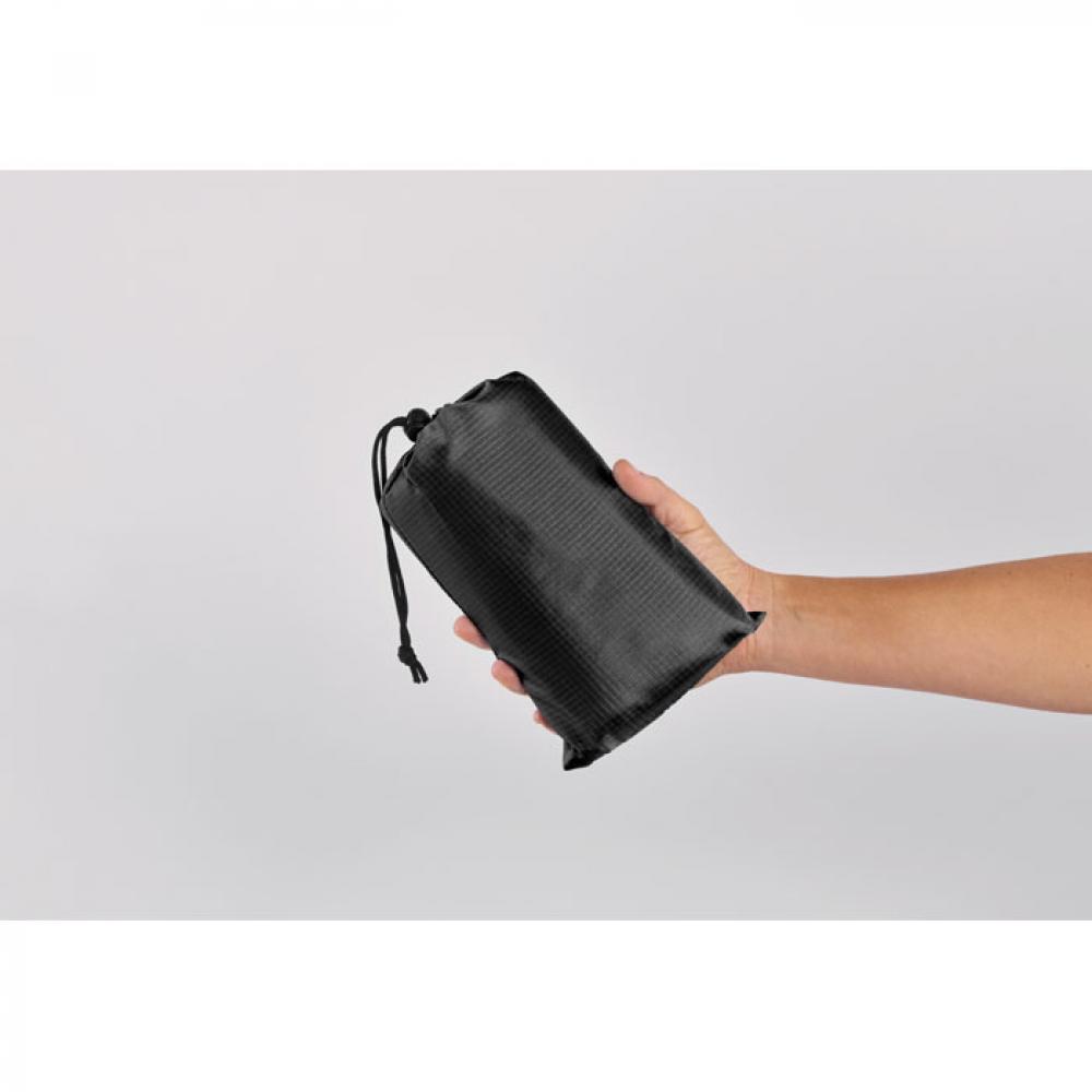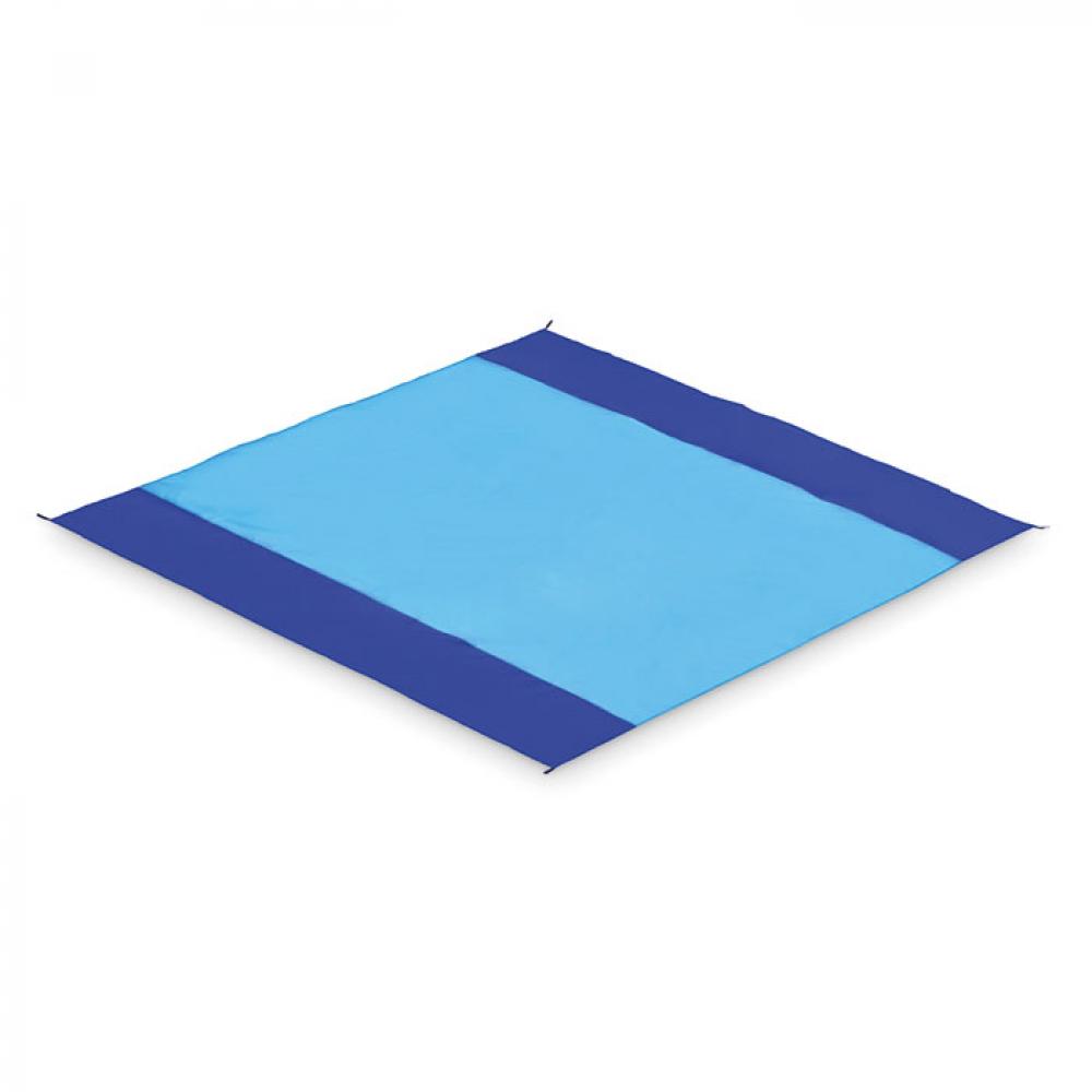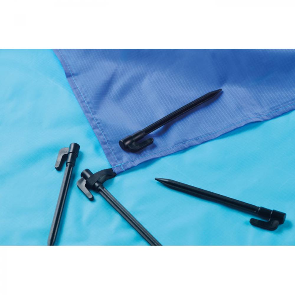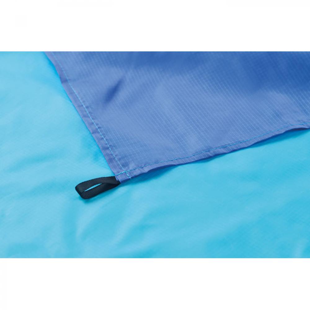 Легкий пляжный коврик из полиэстера 210T размером 200x210 см. В комплекте 4 черных крючка и подходящий мешочек на шнурке для удобной переноски.