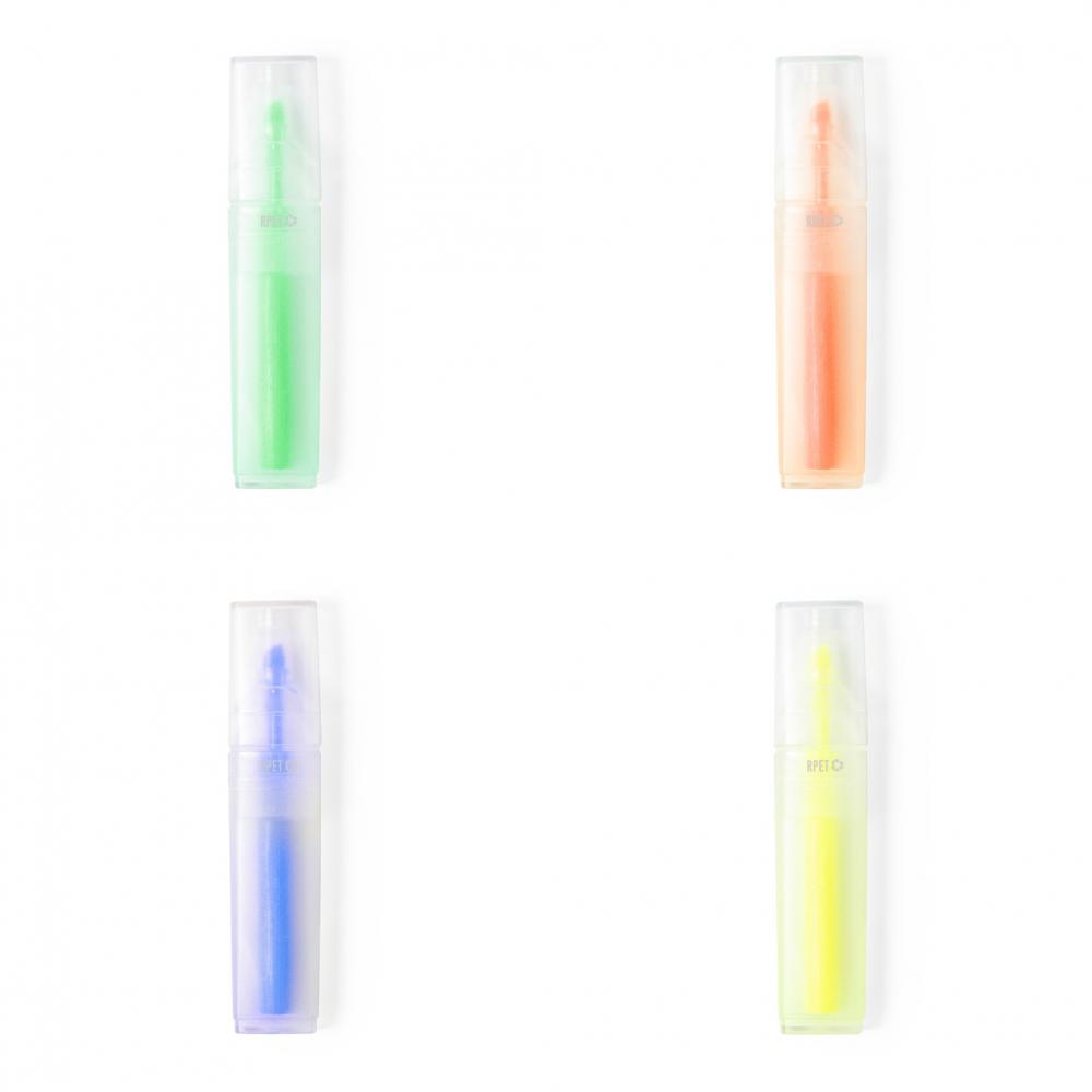Особенности Хайлайтер Nature line из RPET, изготовленный из переработанного пластика, способствует повторному использованию пластиковых отходов и способствует устойчивому развитию планеты. С прозрачным корпусом и соответствующей крышкой. С логотипом RPET, напечатанным на маркере. RPET