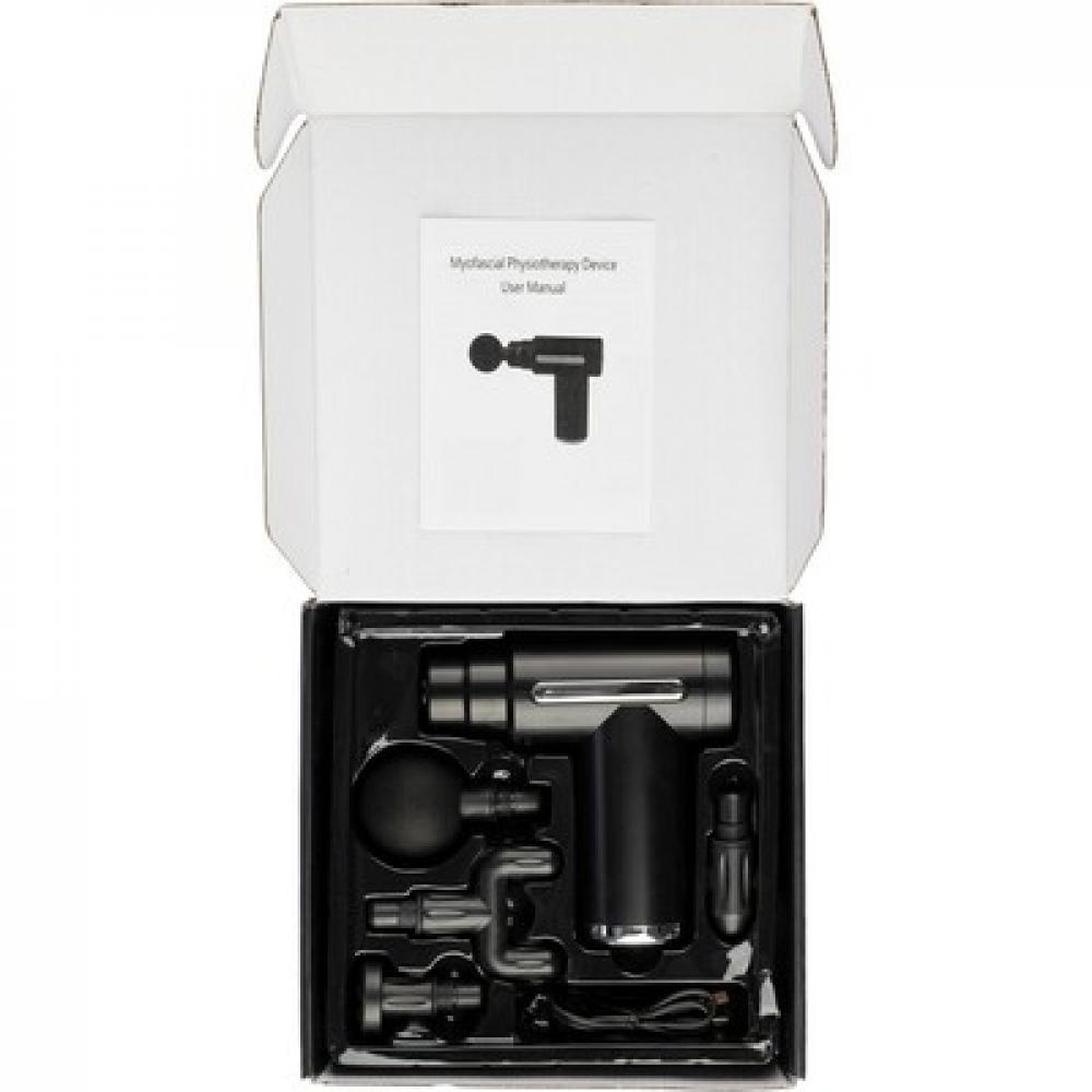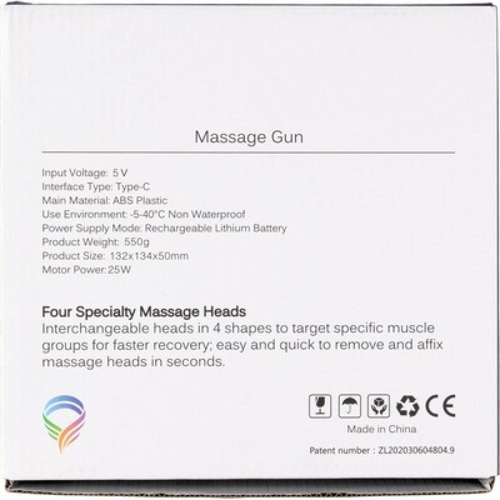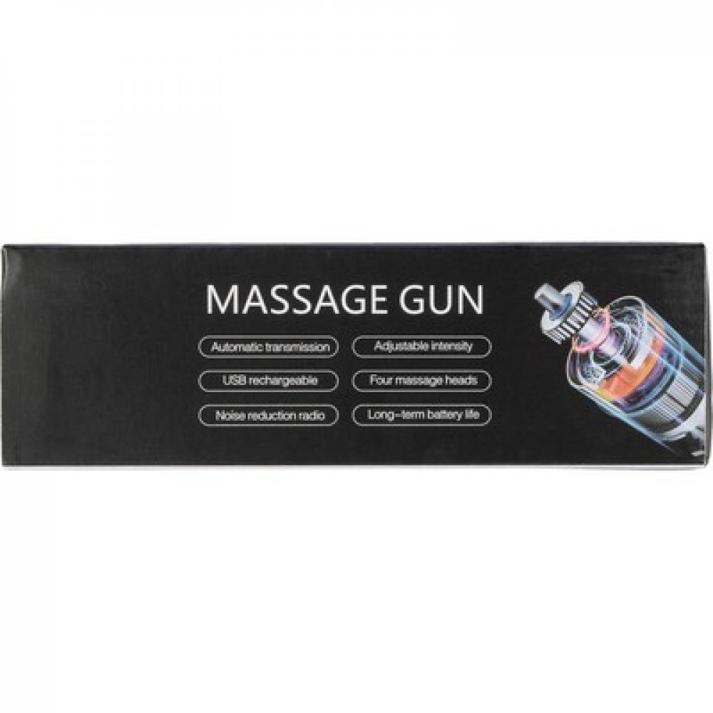 Массажер для мышц с щеточным двигателем (скорость 1800 - 3200 об/мин) и аккумулятором на 1200 мАч, вход 5V и 6 уровней интенсивности массажа, помогает расслабиться после напряженного дня, 4 насадки для массажа, в подарочной коробке, изделие изготовлено из ABS.
