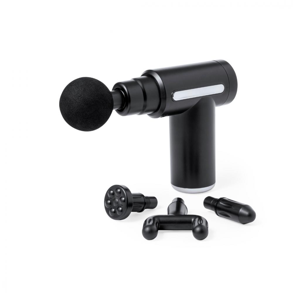 Электрический массажер. Помогает расслабить мышцы, снять усталость после тренировок, устранить напряжение и оживить тело. С двумя режимами интенсивности и 4 насадками для использования на различных участках тела. Долговечный аккумулятор на 1200 мАч - в комплекте кабель для зарядки через USB. Инструкция на английском и испанском языках.