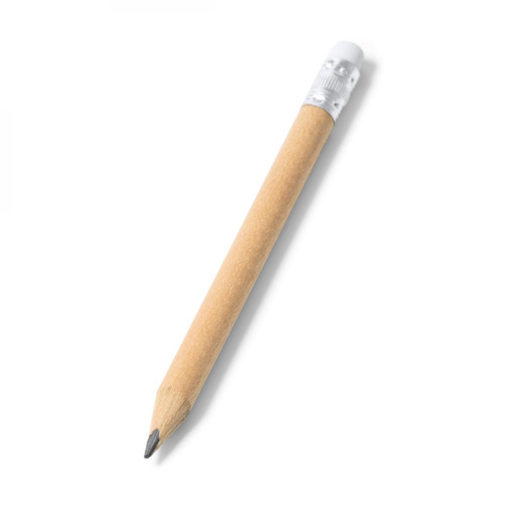 Мини-карандаш из дерева с натуральной отделкой и резинкой. Круглое тело.
