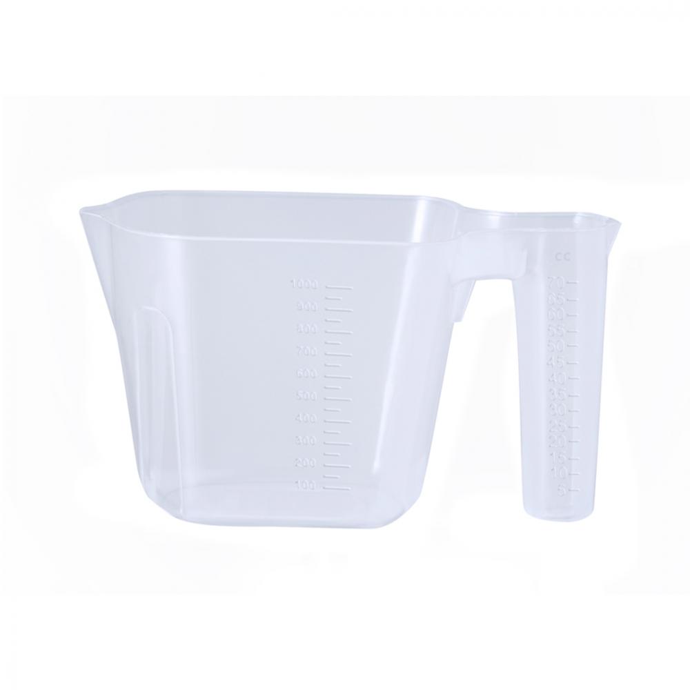 1-литровая мерная кружка из прочного прозрачного ПП с интегрированной ручкой для измерения. Основное отделение вместимостью 1 литр с боковой шкалой в 50 мл сегментах. Ручка для более точной отборки с боковой шкалой в 5 мл сегментах. Носик для удобного налива без разлива в обоих контейнерах. 1 л