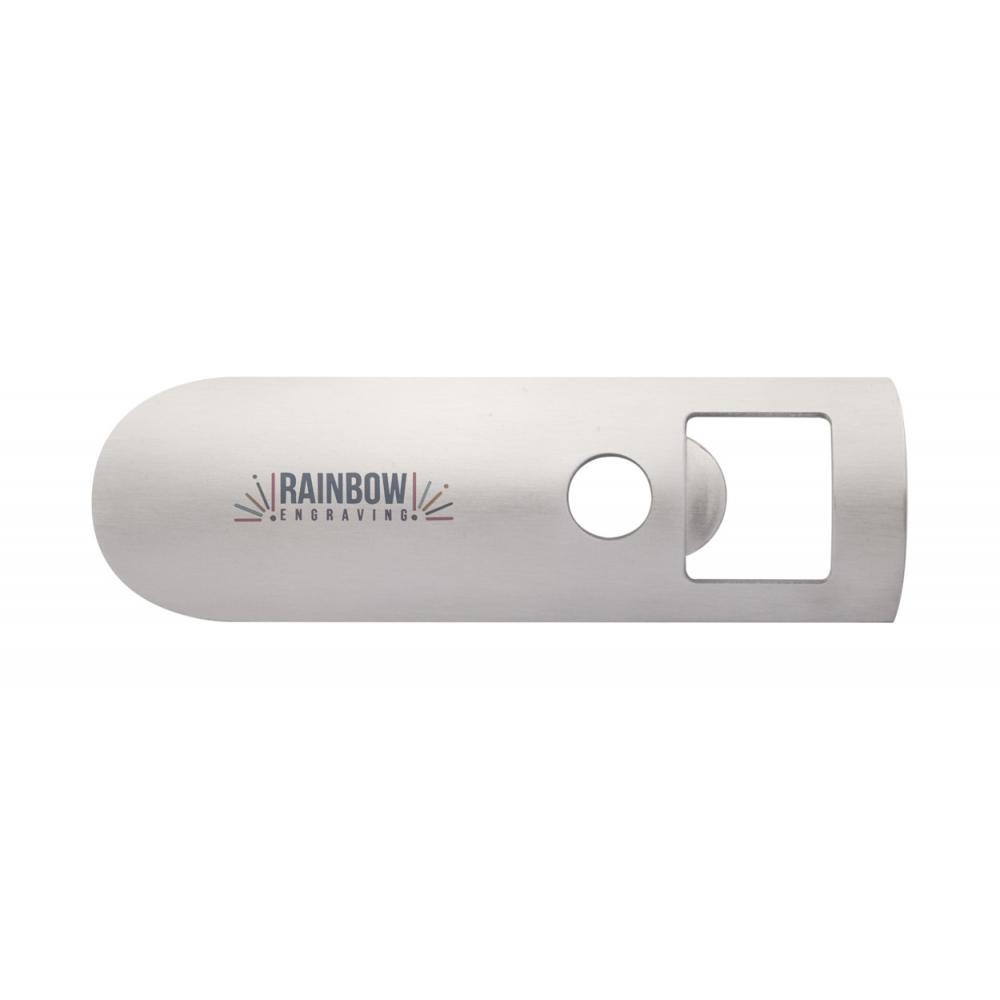 Металлическая открывалка для бутылок в черной картонной коробке.
