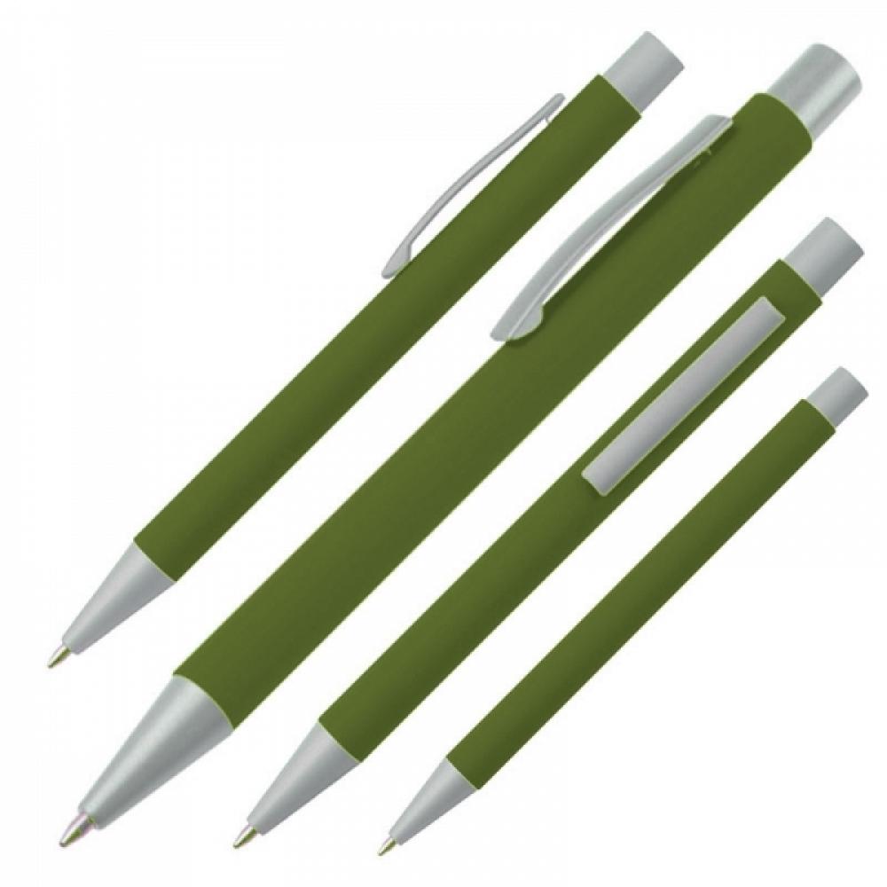 Металлическая ручка с большим стержнем синего цвета. Логотип можно нанести на корпусе возле клипа.