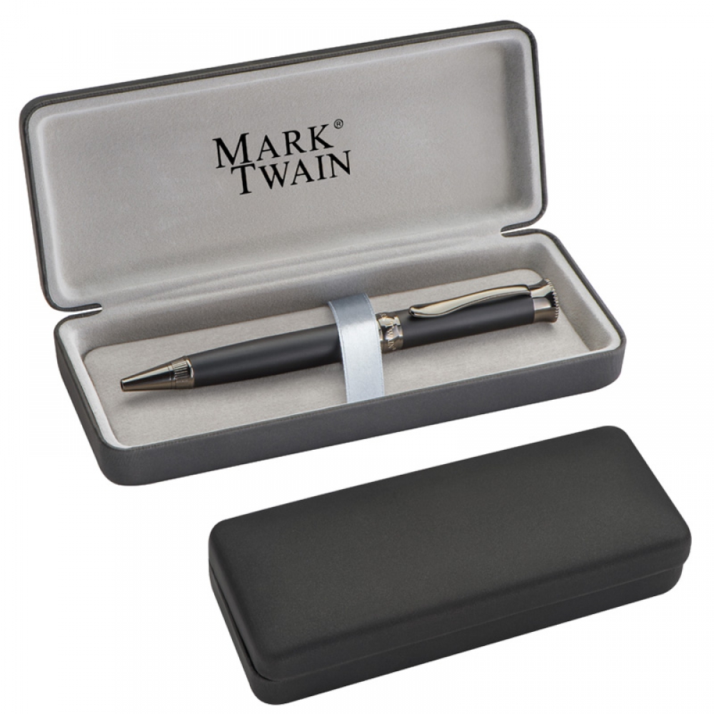 Элегантная металлическая ручка с синими чернилами. Ручка упакована в коробку. Логотип может быть размещен рядом с зажимом.