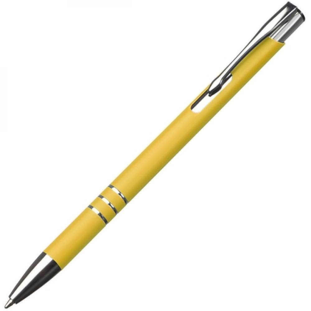 Классическая ручка из металла. Имеет синий стержень. Логотип может быть помещен под клипом.