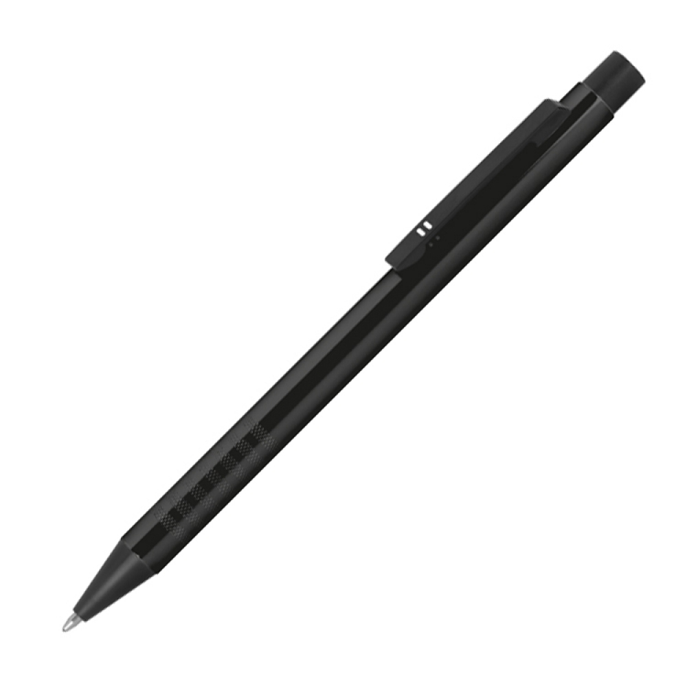 Металлическая ручка с синими чернилами и интересным корпусом.