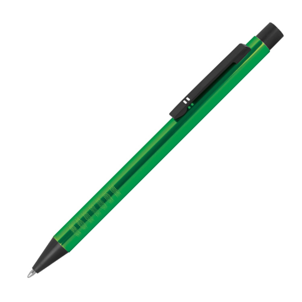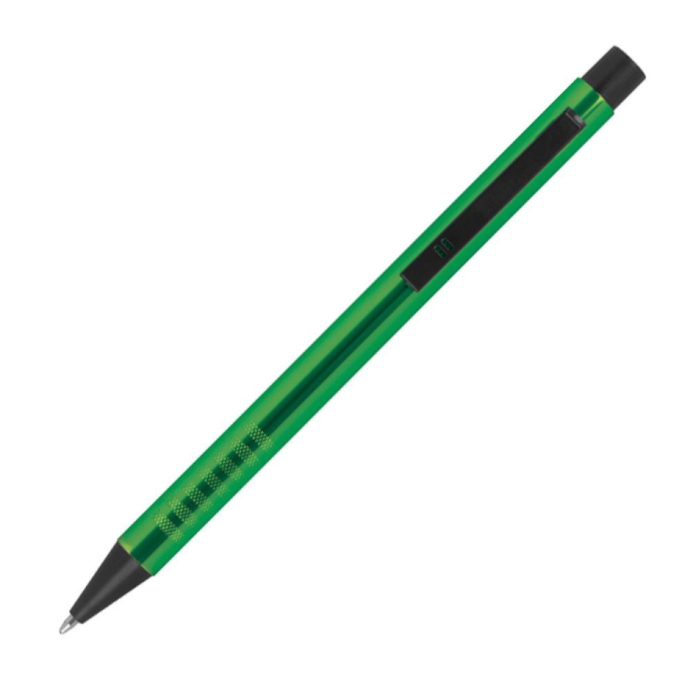 Металлическая ручка с синими чернилами и украшением на корпусе.