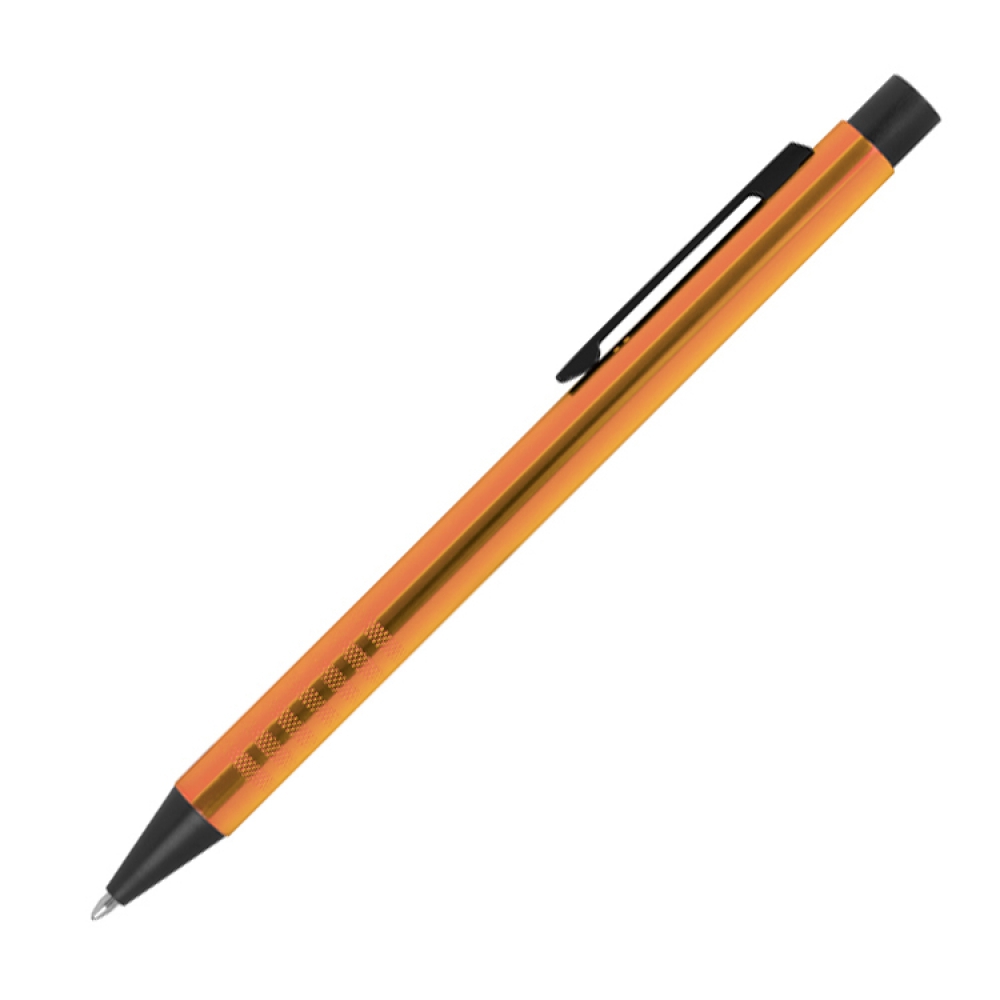 Металлическая ручка с синими чернилами и украшением на корпусе.