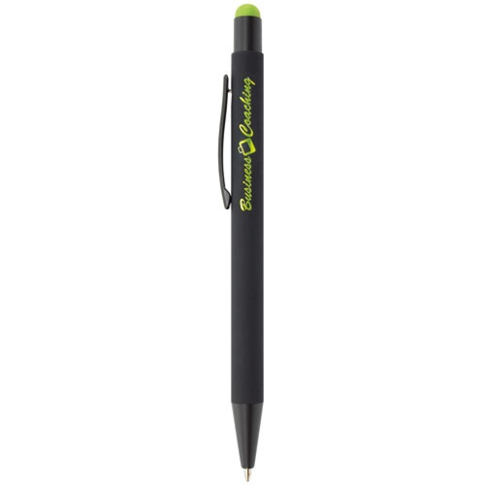 Элегантная шариковая ручка с особым покрытием SOFT EFFECT, создающим мягкую текстуру. На верхней части ручки имеется сенсорный наконечник. Интересная техника гравировки с использованием блестящего волоконного лазера и зеркального покрытия, соответствующего цвету сенсорного наконечника, делает эту ручку привлекательным предметом для размещения вашей рекламы. Доступна в 4 цветах: серебристый, красный, зеленый и синий. Пишет синим цветом.