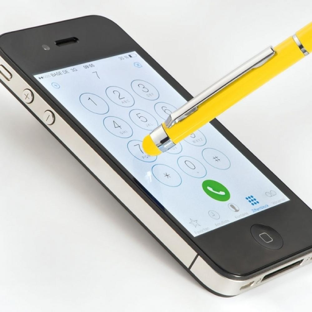 Металлическая ручка ORLEANS с синим картриджем для письма. Touch pen находится над клипом. Ручка доступна в богатой цветовой гамме.