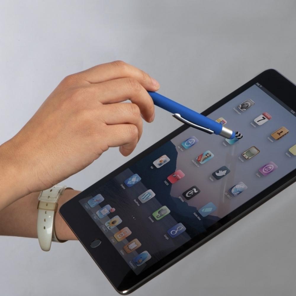 Металлическая ручка с сенсорным стилусом, пишет синим цветом. Логотип можно разместить на теле рядом с клипом. Приметка: Ручка не упакована в один мешок.