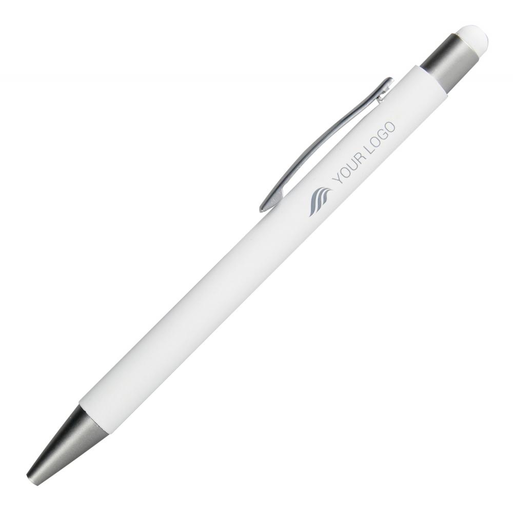 Металлическая ручка с сенсорным стилусом, пишет синим цветом. Логотип можно разместить на теле рядом с клипом. Приметка: Ручка не упакована в один мешок.