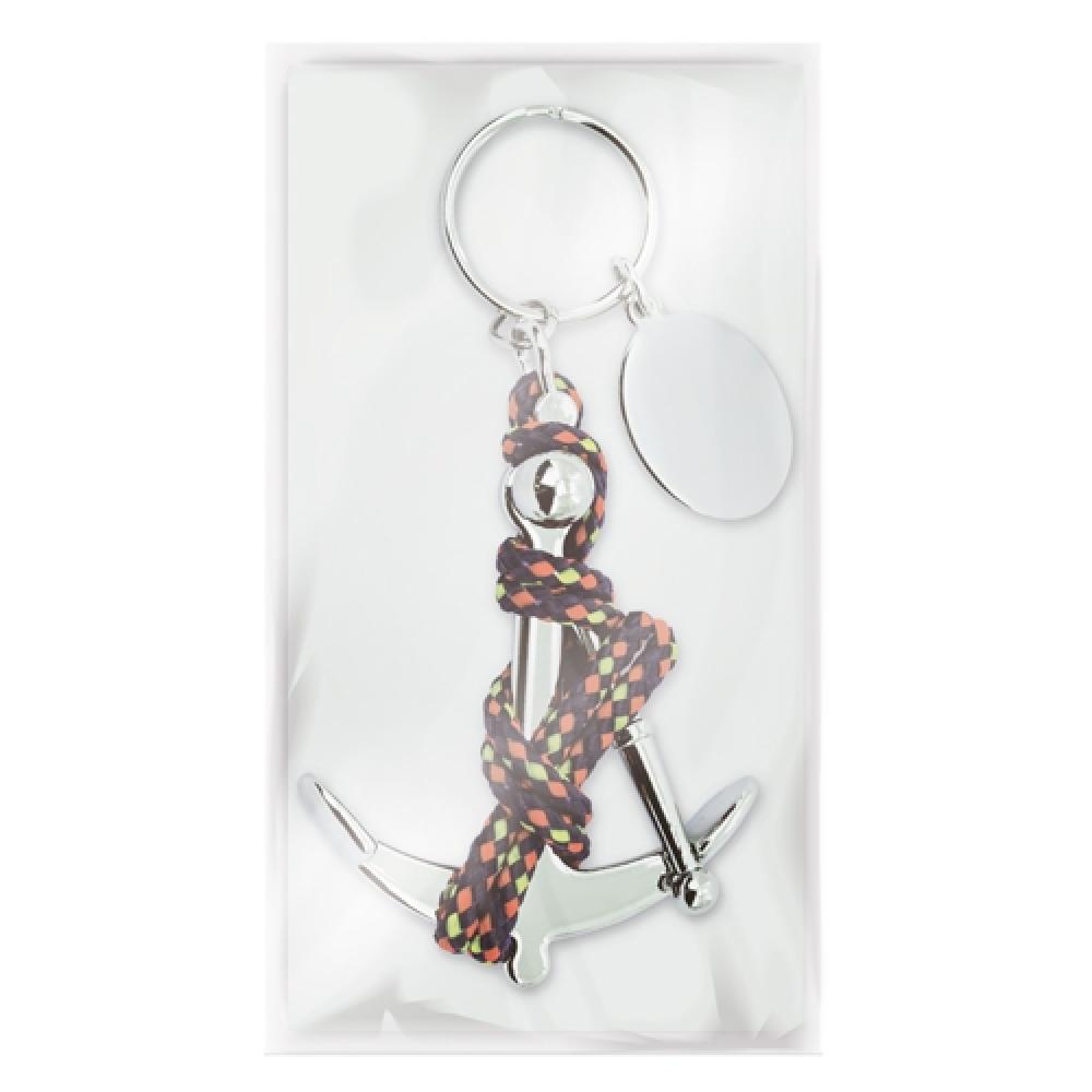 Брелок с морским якорем, соединенным веревкой с деталями испанского флага. Включает пластину для лазерной печати.