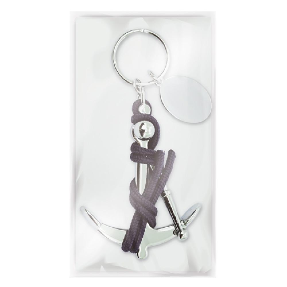 Брелок с морским якорем, соединенным синим веревкой. Включает пластину для лазерной печати.