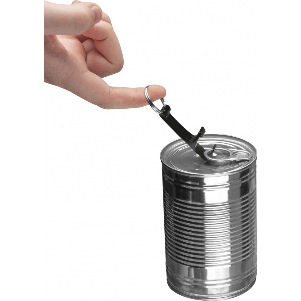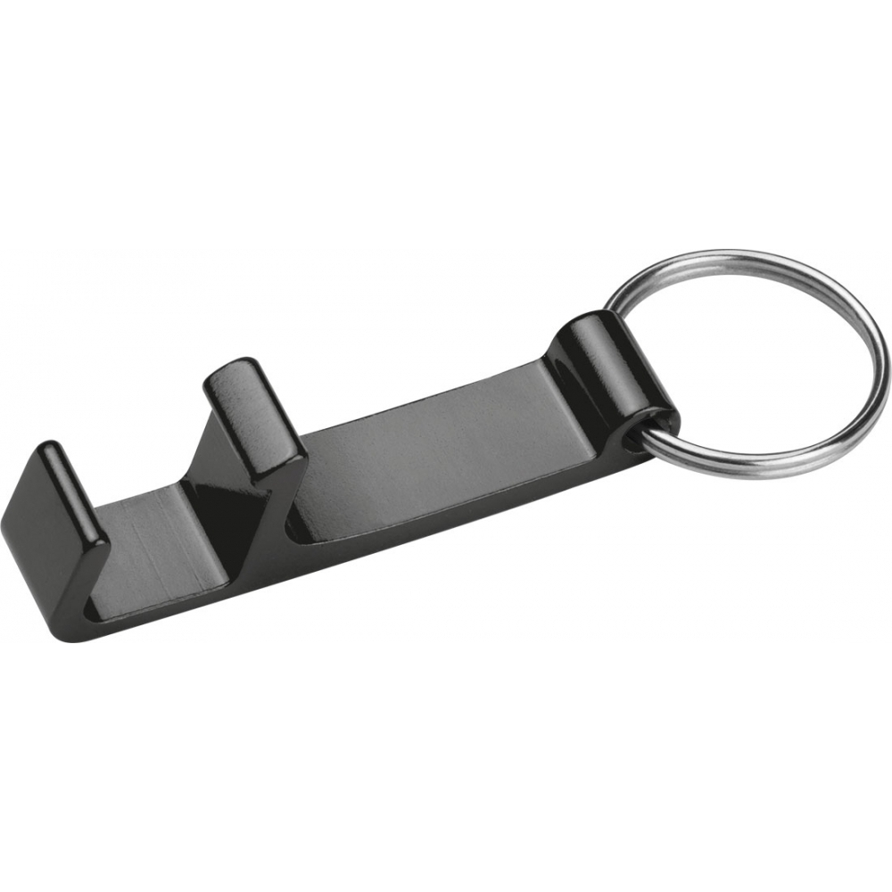 Металлический брелок с открывалкой для бутылок и банок, который также можно использовать как подставку для мобильного телефона. Ваш логотип будет выгравирован на брелоке.